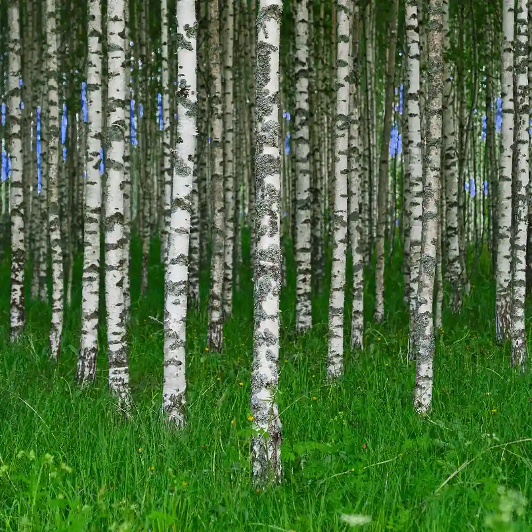 Fototapeta brzoza las brzozowy na wymiar — do salonu sypialni, styl skandynawski boho, zielona biała natura