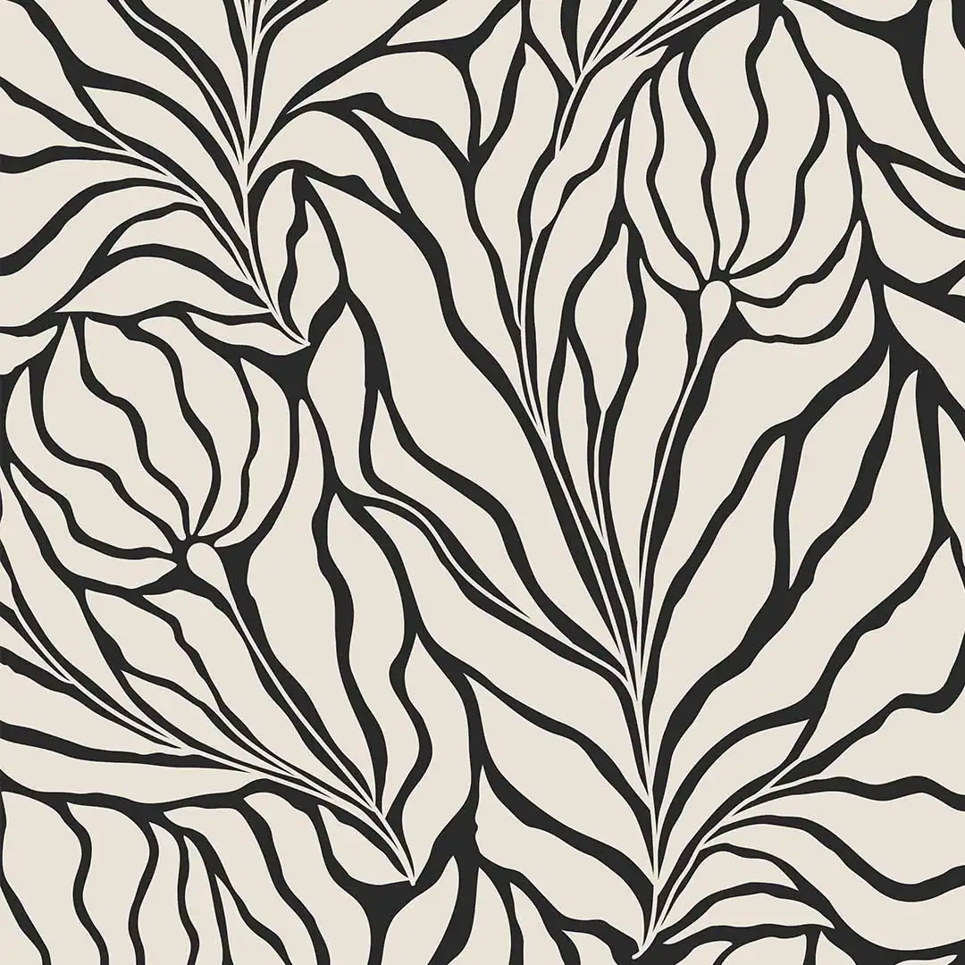 Fototapeta na wymiar Czarno-Beżowa Graficzna w Liście, Nowoczesny Wzór do Salonu i Sypialni