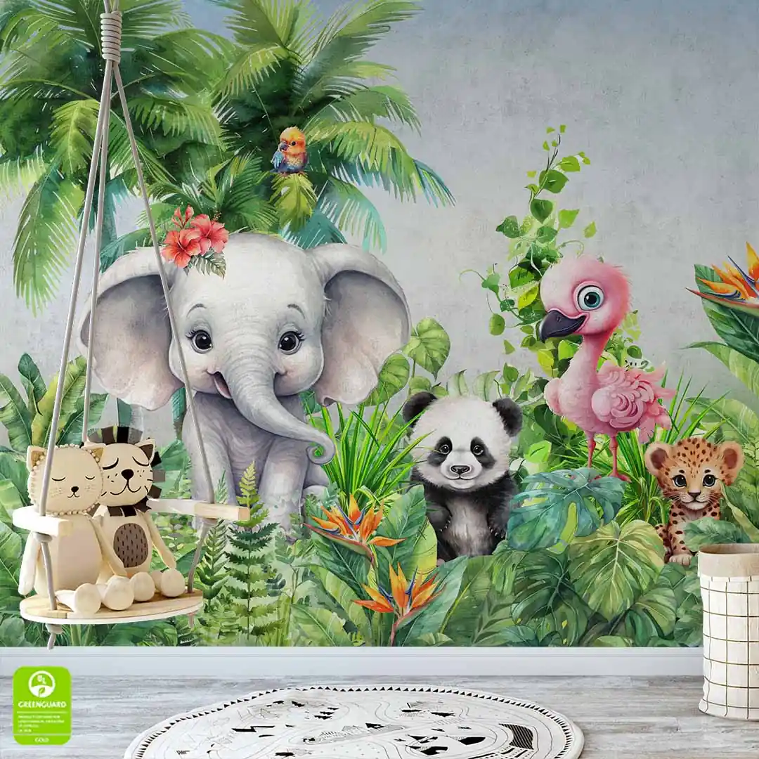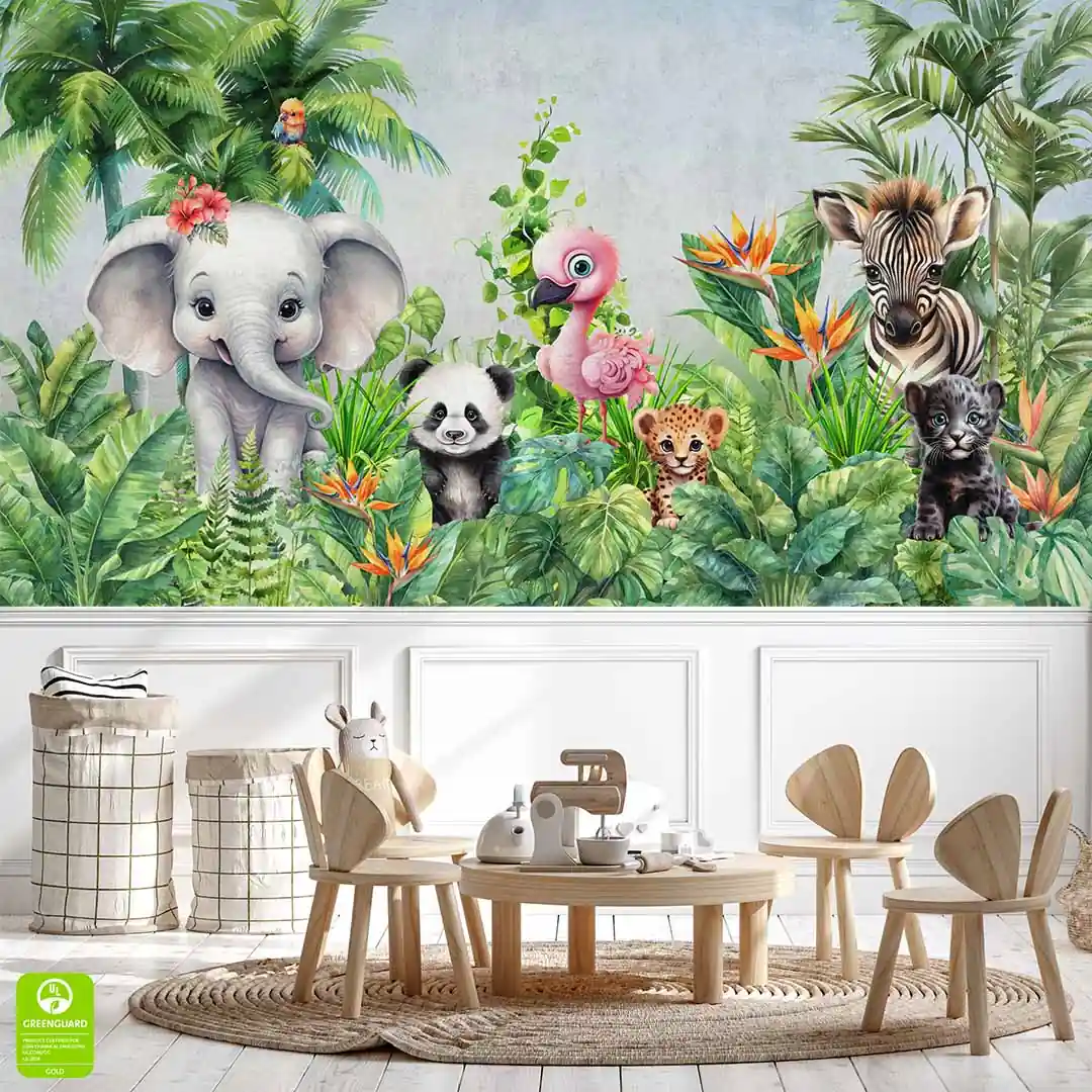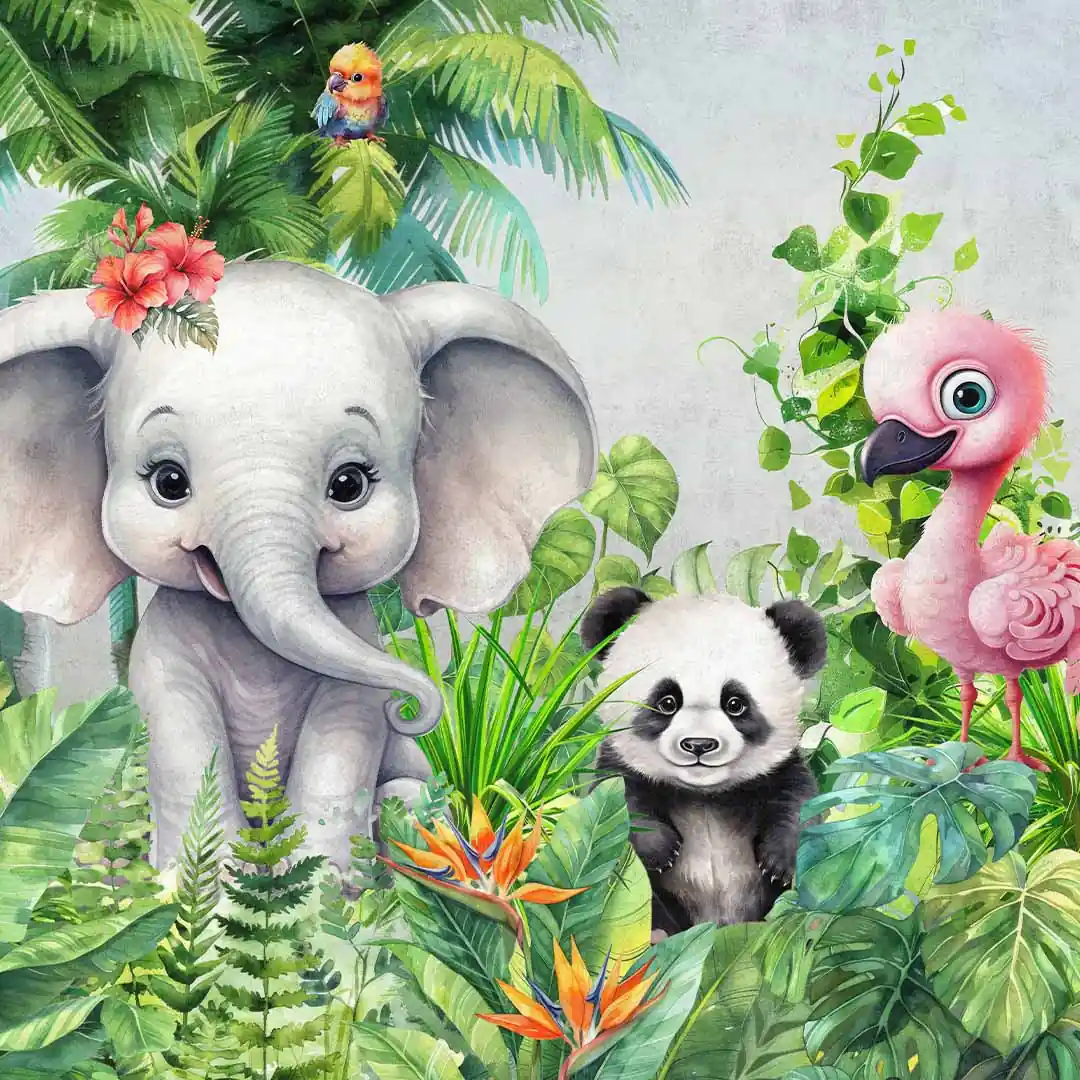 Fototapeta Dziecięca na Wymiar – Akwarelowa Dżungla "Słodkie Zwierzęta Safari"