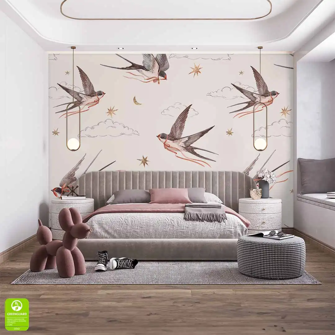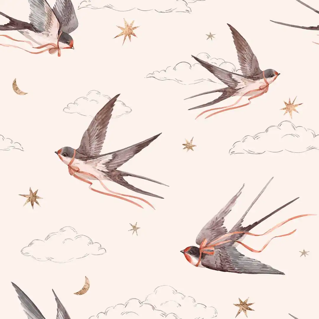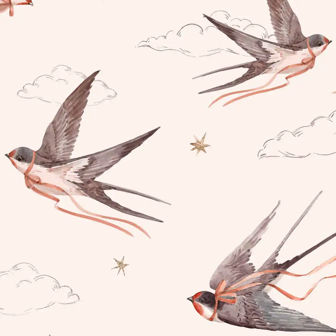 Fototapeta Jaskółki w locie - Niebo w odcieniach różu z jaskółkami, ptaki w locie