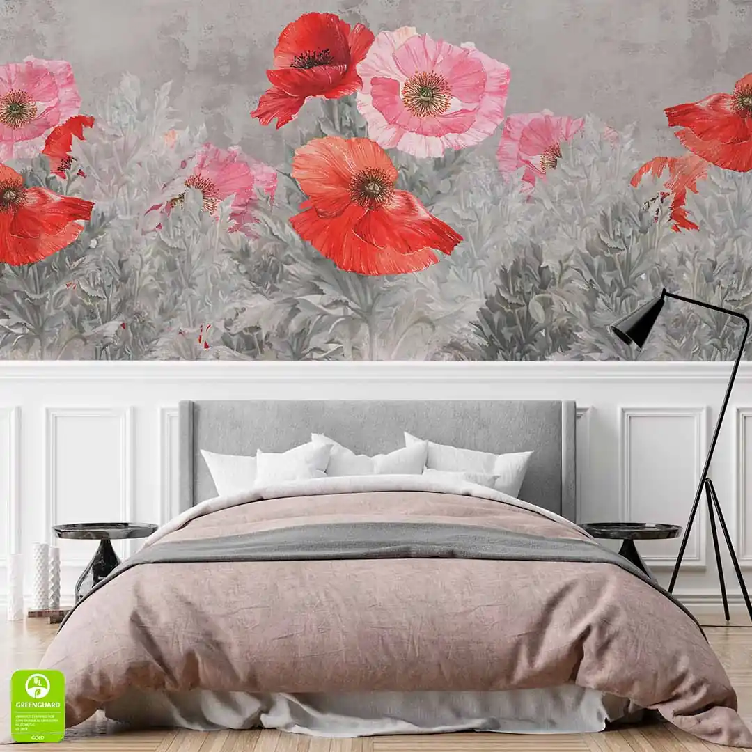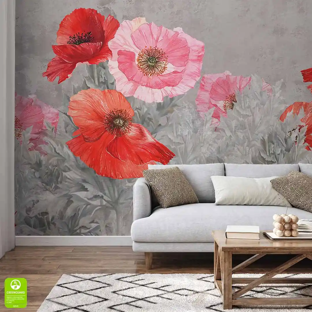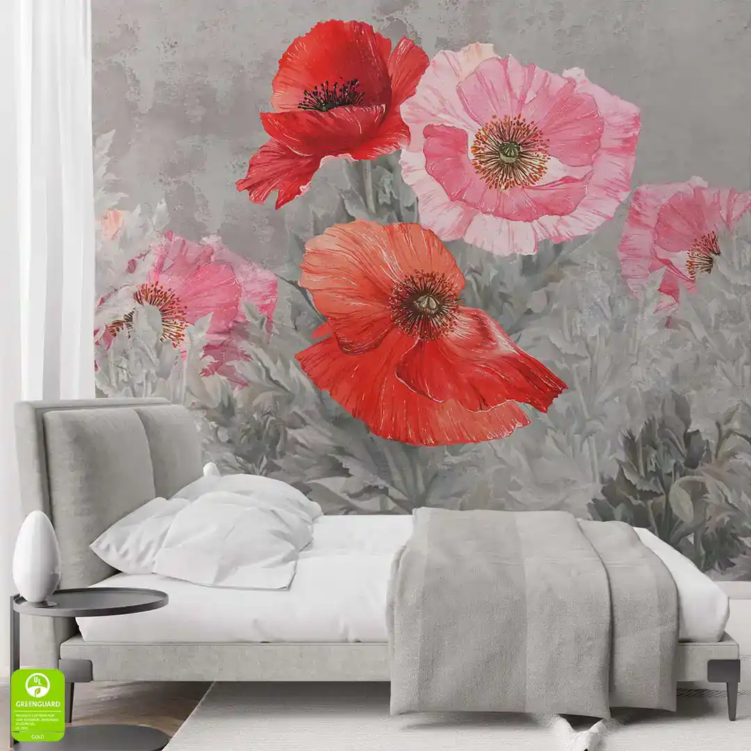 Fototapeta na wymiar Czerwone Maki – Szary Beton, Salon i Sypialnia, Styl Nowoczesny i Loft