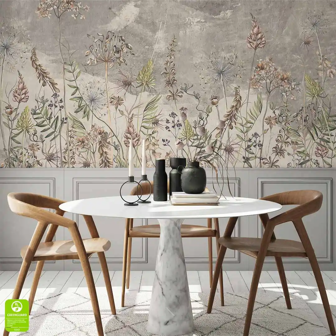 Masz możliwość wyboru materiału pomiędzy tapetą flizelinową a tapetą winylową. Pamiętaj, że tapeta winylowa jest tapetą o podwyższonej wytrzymałości i jest łatwiejsza w utrzymaniu w czystości (ze względu na zmywalność) w stosunku do tapety flizelinowej.