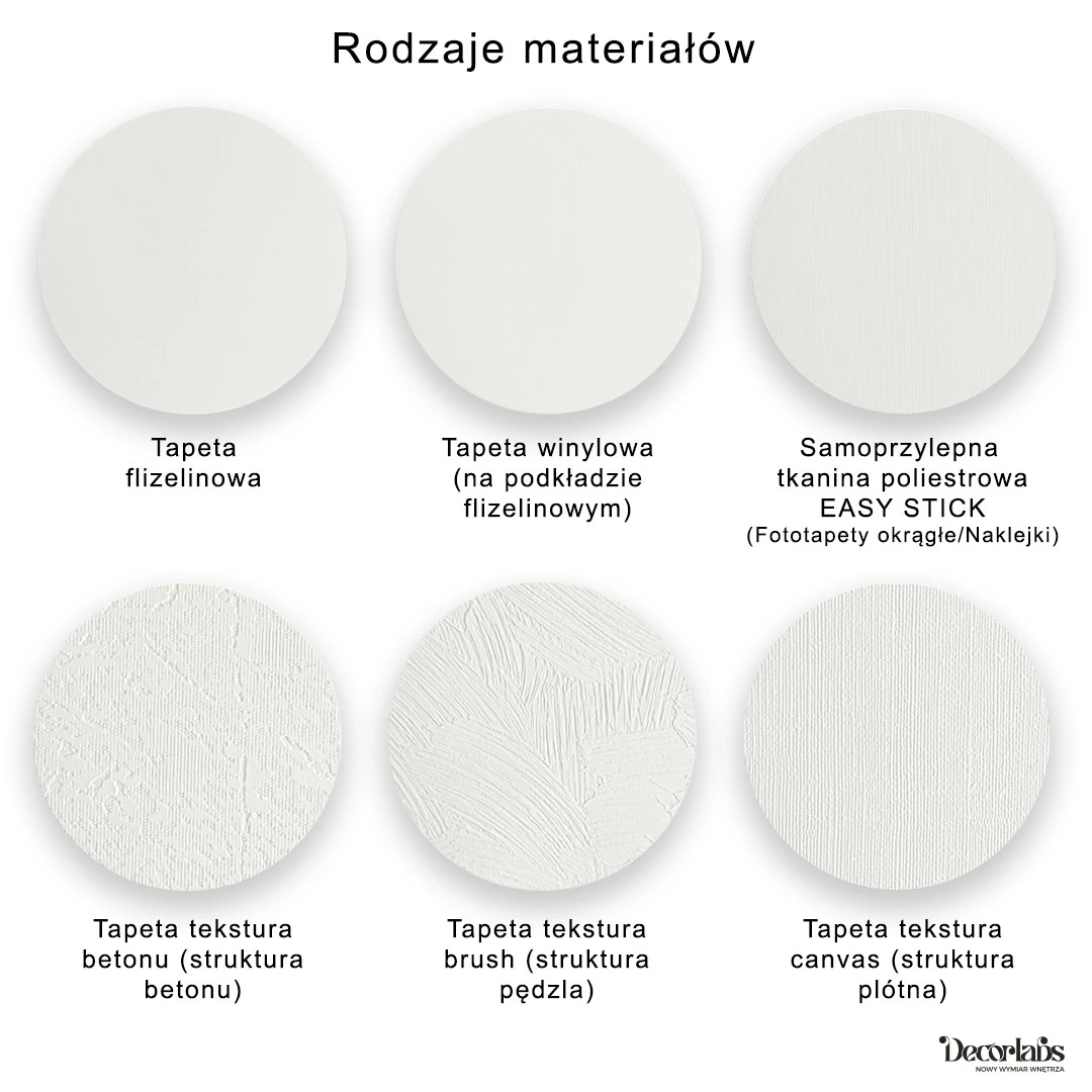 Masz możliwość wyboru materiału pomiędzy tapetą flizelinową a tapetą winylową. Pamiętaj, że tapeta winylowa jest tapetą o podwyższonej wytrzymałości i jest łatwiejsza w utrzymaniu w czystości (ze względu na zmywalność) w stosunku do tapety flizelinowej.