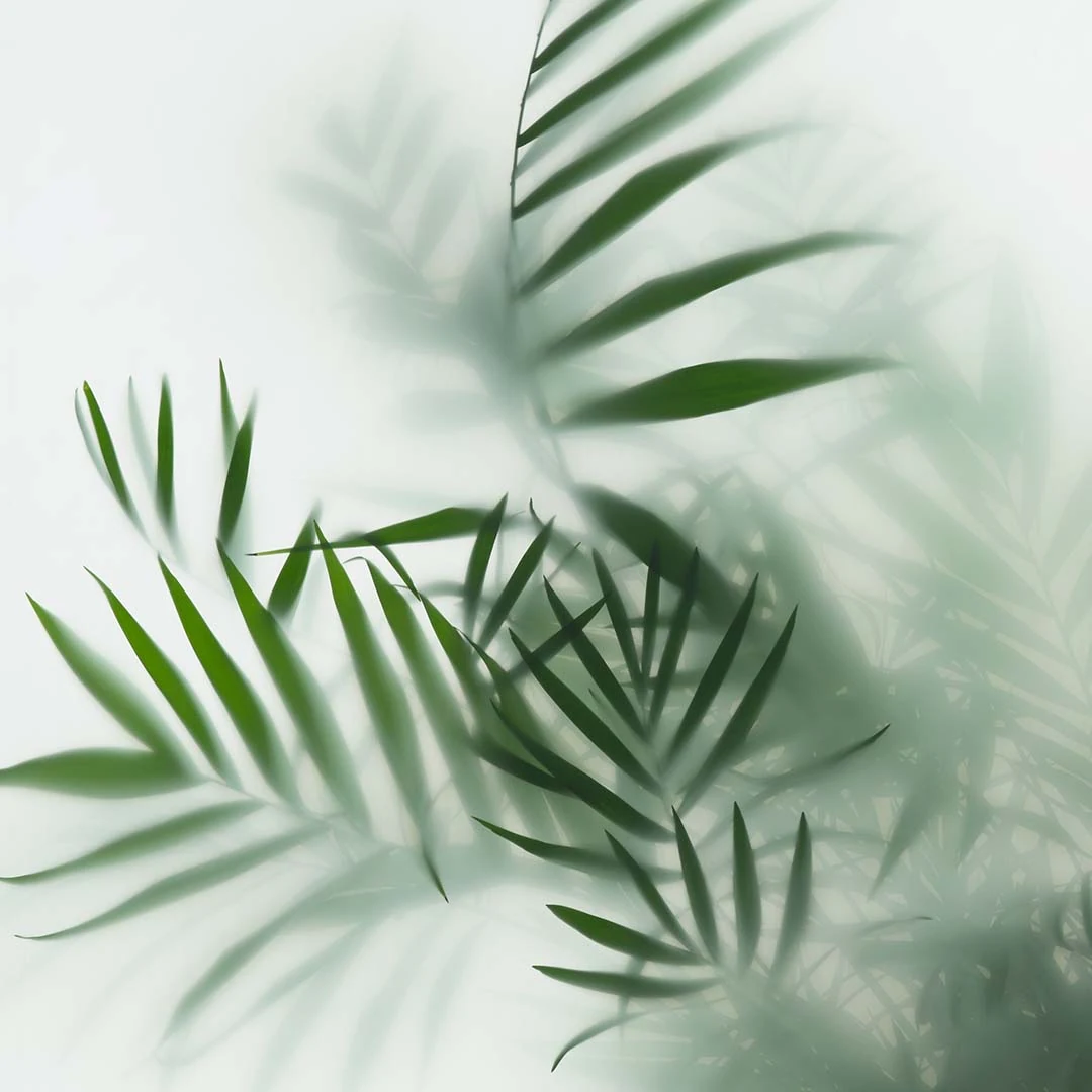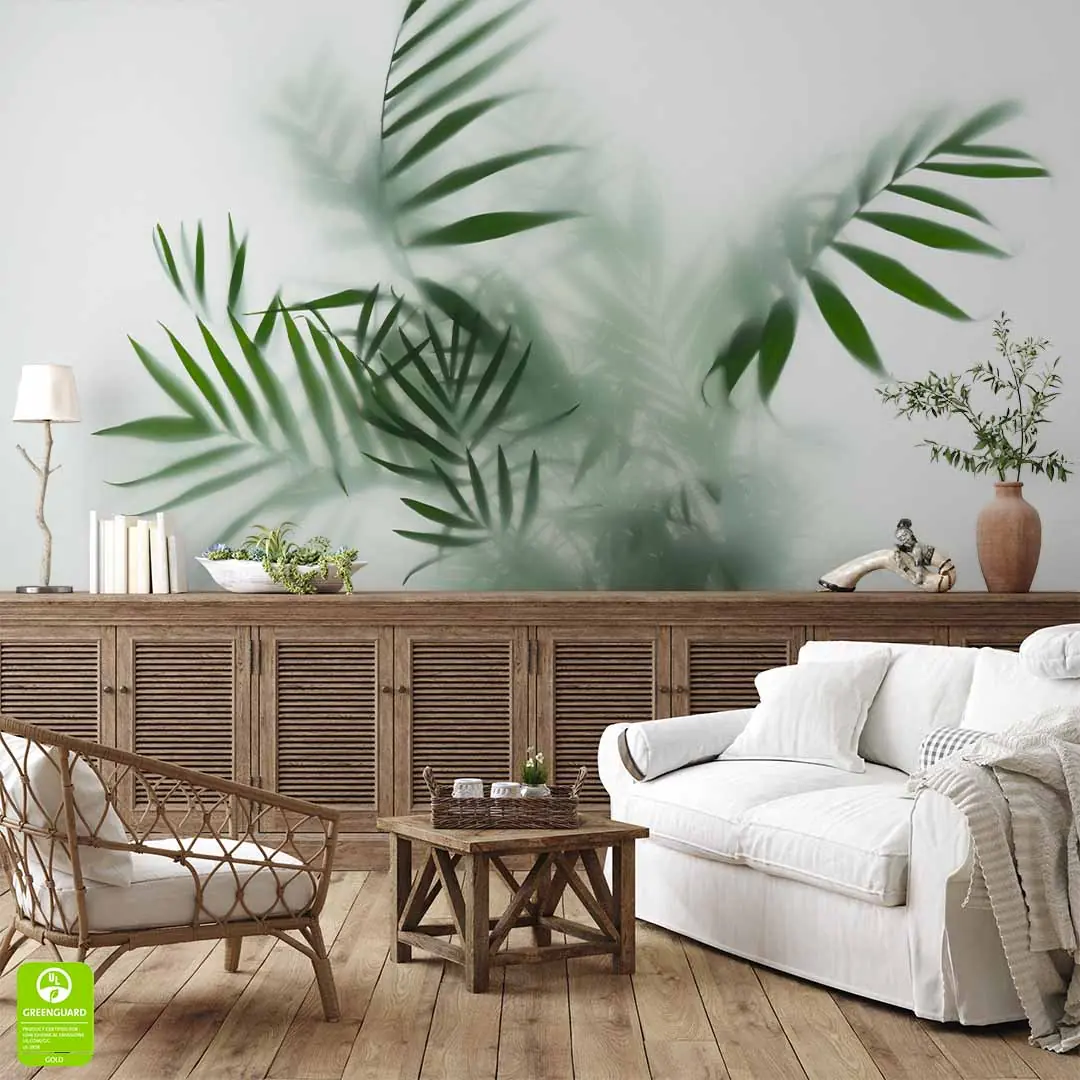 Fototapeta na Wymiar Liście Palmy we Mgle, Subtelny Efekt 3D do Salonu i Sypialni