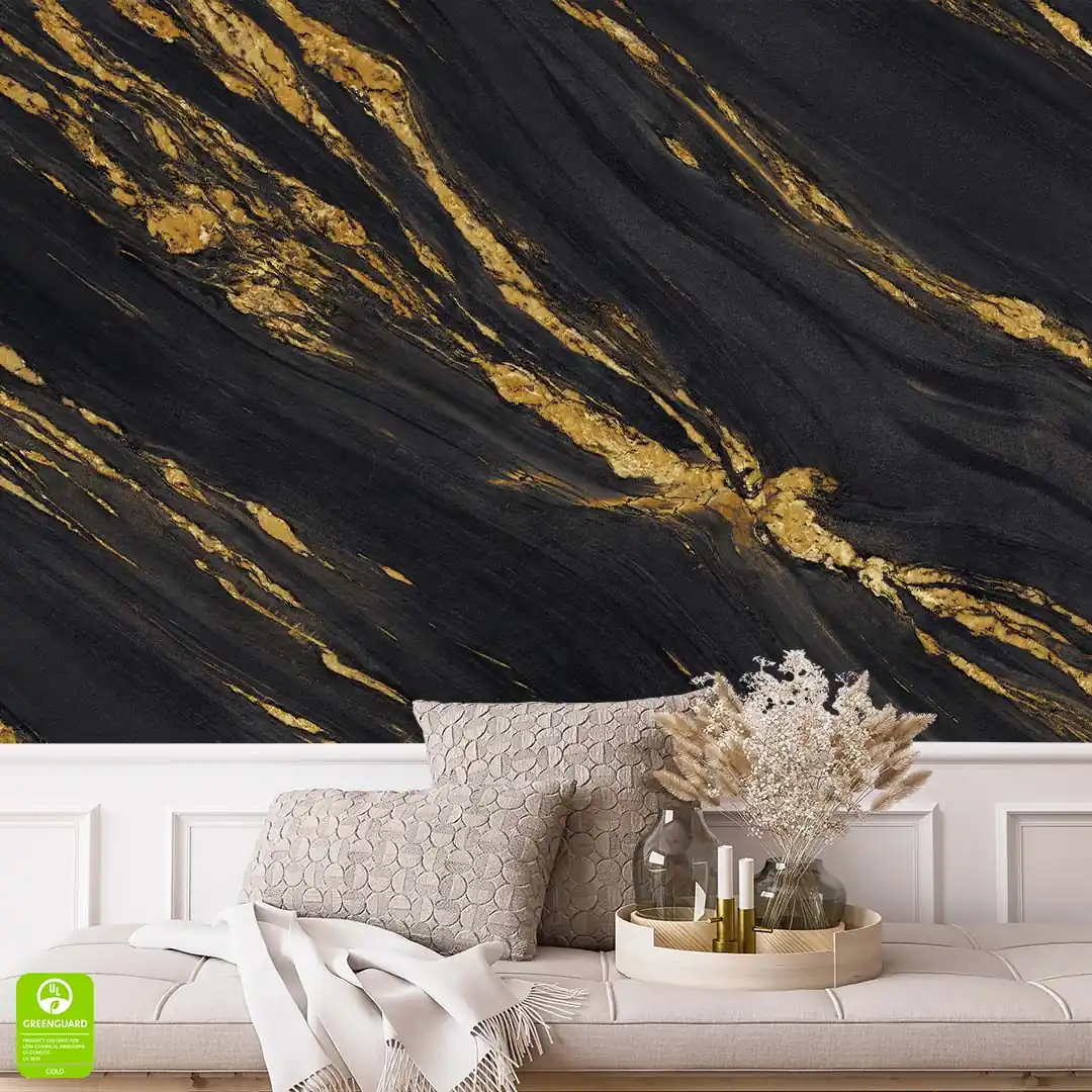 Fototapeta na wymiar: Czarny Marmur z dodatkiem Koloru Złota – Styl Glamour i Nowoczesny, Fototapeta do salonu i sypialni, Czarna i w Kolorze Złota, Elegancka tekstura kamienia XXL