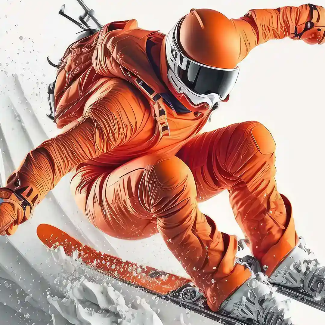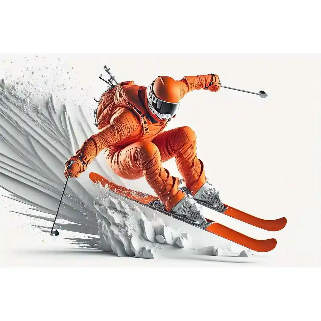 Fototapeta narciarz zjazd 3D pomarańczowy na wymiar — pokój chłopca nastolatka, styl sportowy nowoczesny, biała pomarańczowa