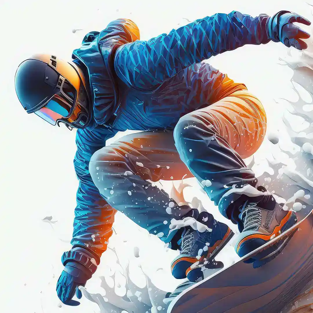 Fototapeta Snowboardzista 3D na wymiar — pokój chłopca młodzieżowy, styl sportowy nowoczesny loft, niebieska pomarańczowa