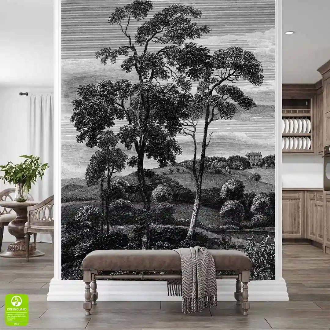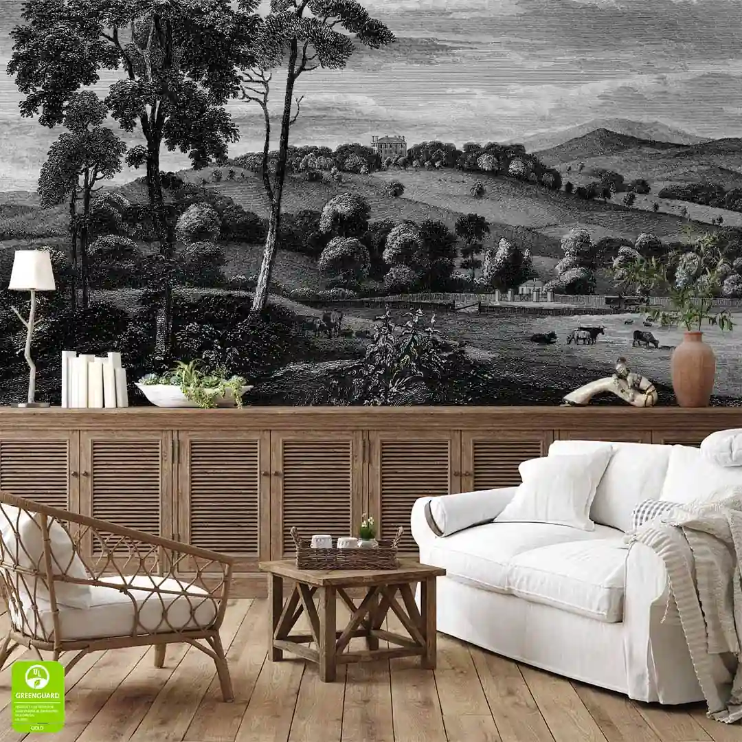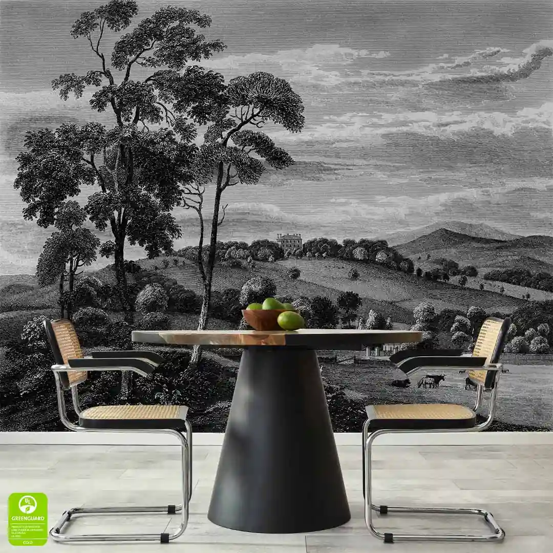 Fototapeta na wymiar - Mural Wiejski pejzaż w szarościach - Przyroda