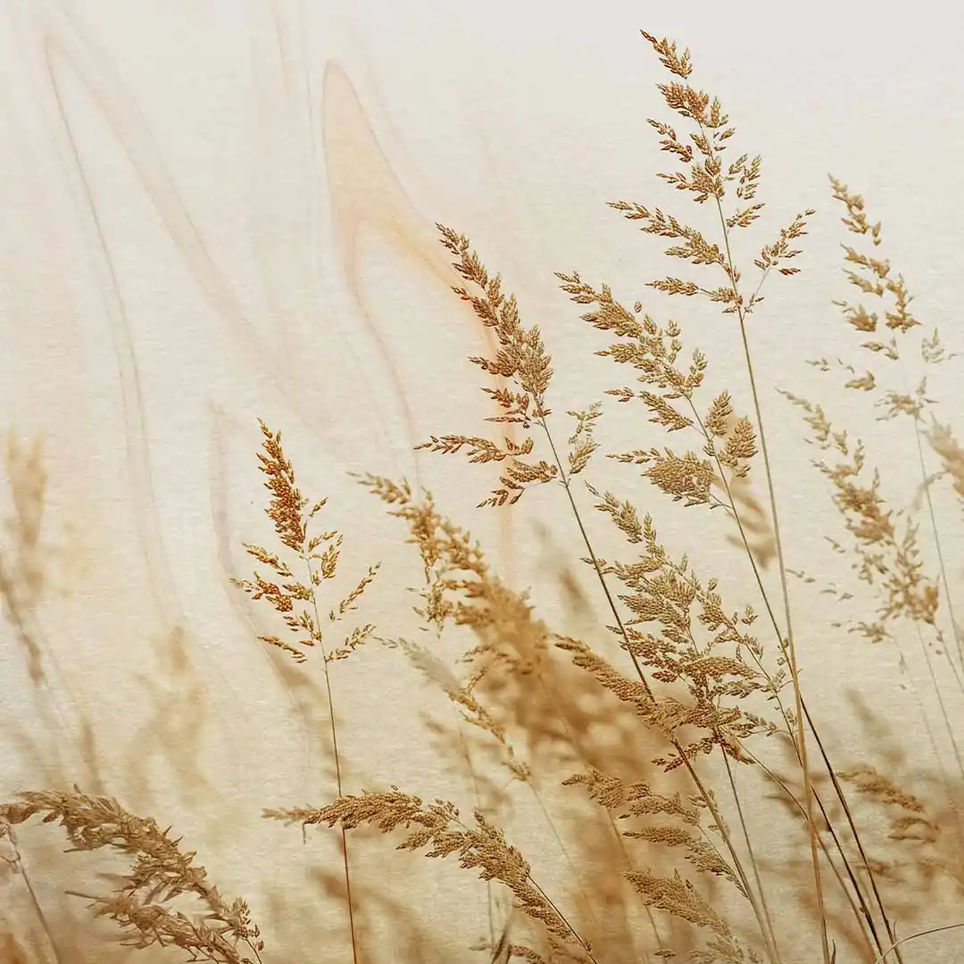 Ciepłe odcienie beżu i złota to fundament aranżacji, które mają emanować spokojem i domowym ciepłem. Fototapeta "Kłoski złotej trawy na polu" przenosi do wnętrza najpiękniejsze wspomnienie późnego lata, wprowadzając do pomieszczenia miękkie, naturalne światło. Stylistyka oparta na motywie suchych traw doskonale wpisuje się w modny nurt boho oraz skandynawski, gdzie liczy się bliskość natury i autentyczność. Delikatność roślinnych detali sprawia, że ściana zyskuje lekkość, a całe pomieszczenie staje się optycznie bardziej przestronne i jasne. To idealny wybór dla osób, które pragną stworzyć przestrzeń sprzyjającą wyciszeniu i codziennej regeneracji pośród naturalnych motywów.