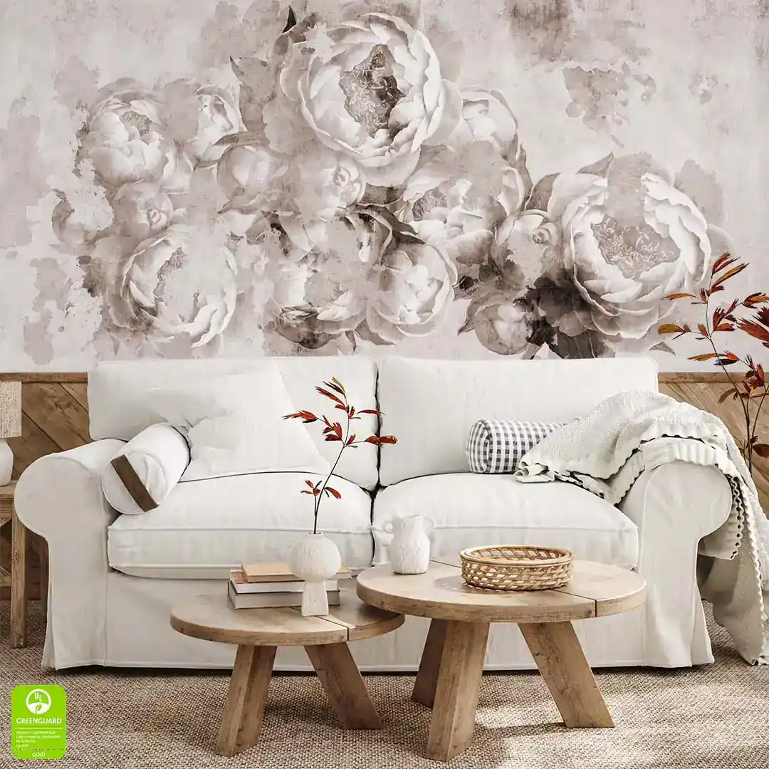 Fototapeta na wymiar Piwonie XXL – Szary Beton, Sypialnia i Salon, Styl Glamour i Nowoczesny