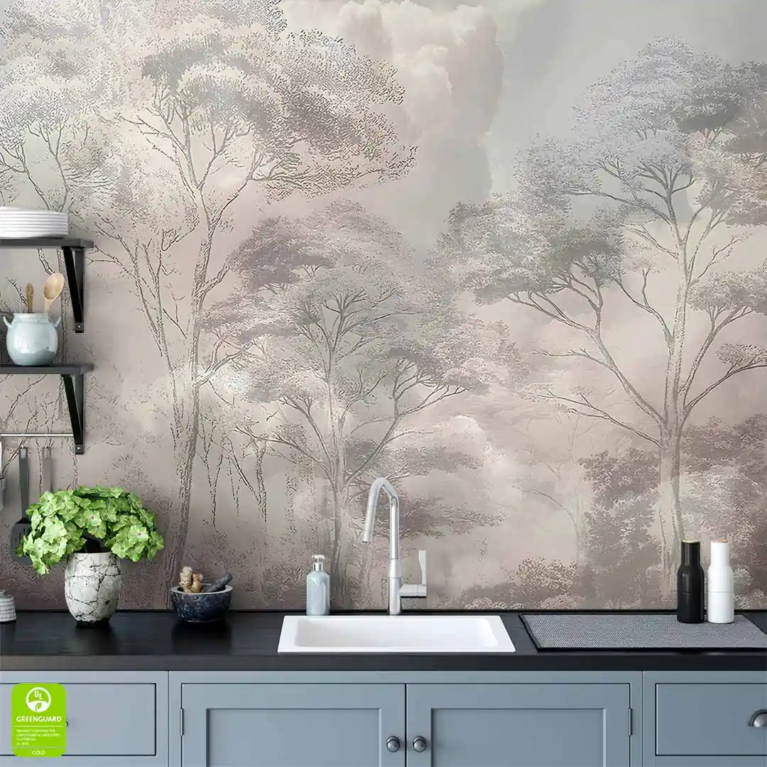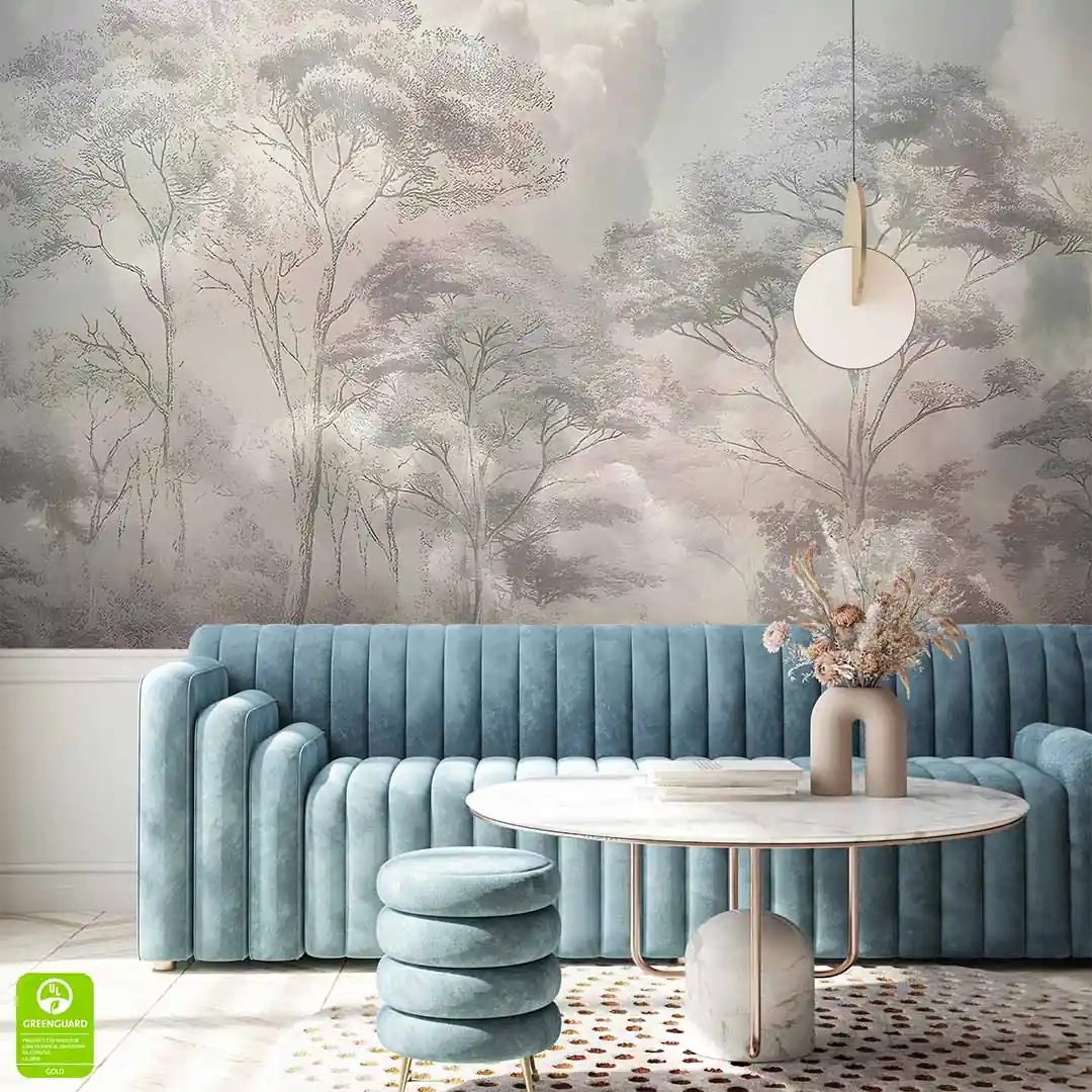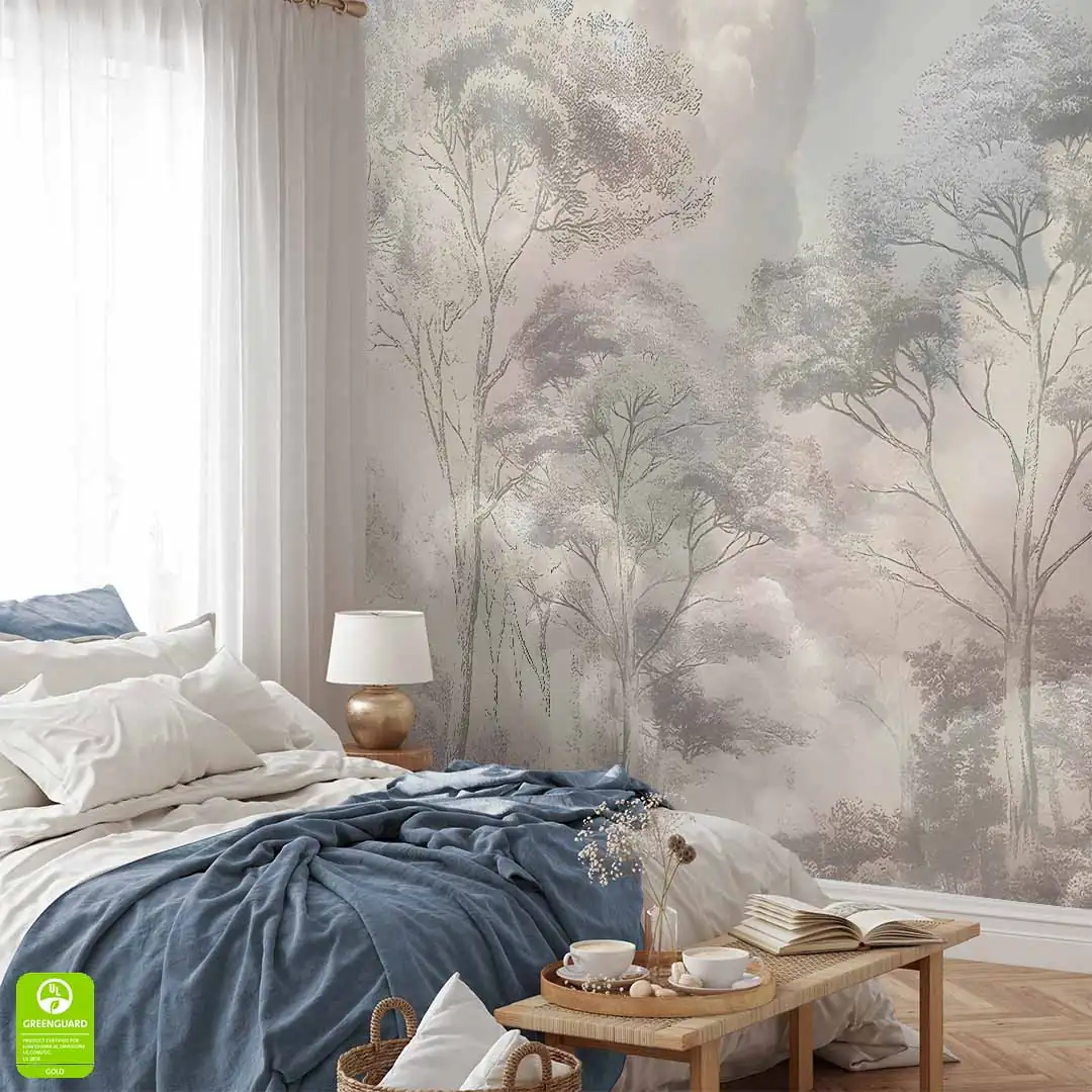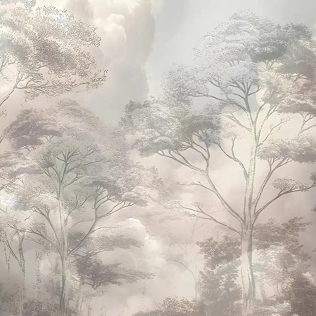 Fototapeta na wymiar – Mgliste Drzewa w Stonowanych Barwach, Styl Nowoczesny, Do Salonu, Sypialni