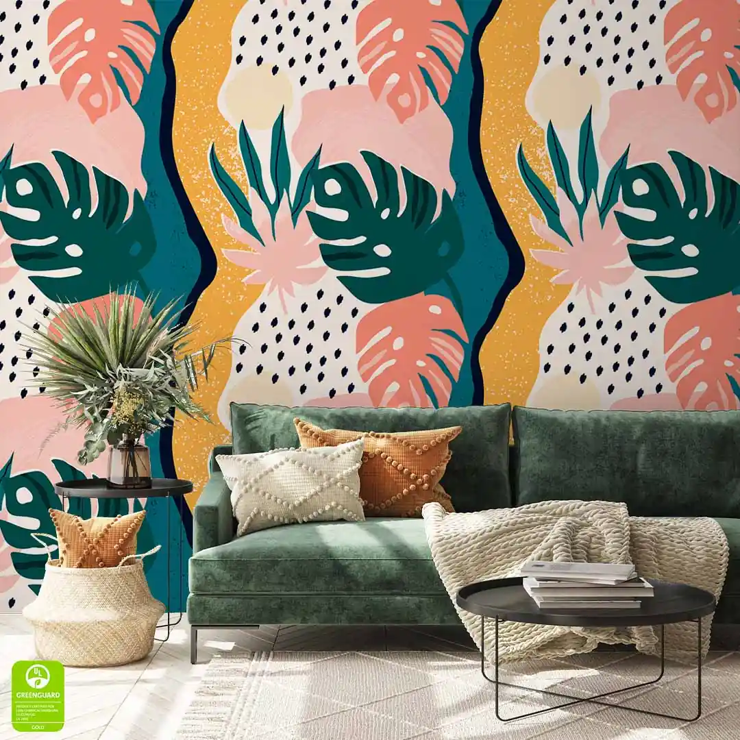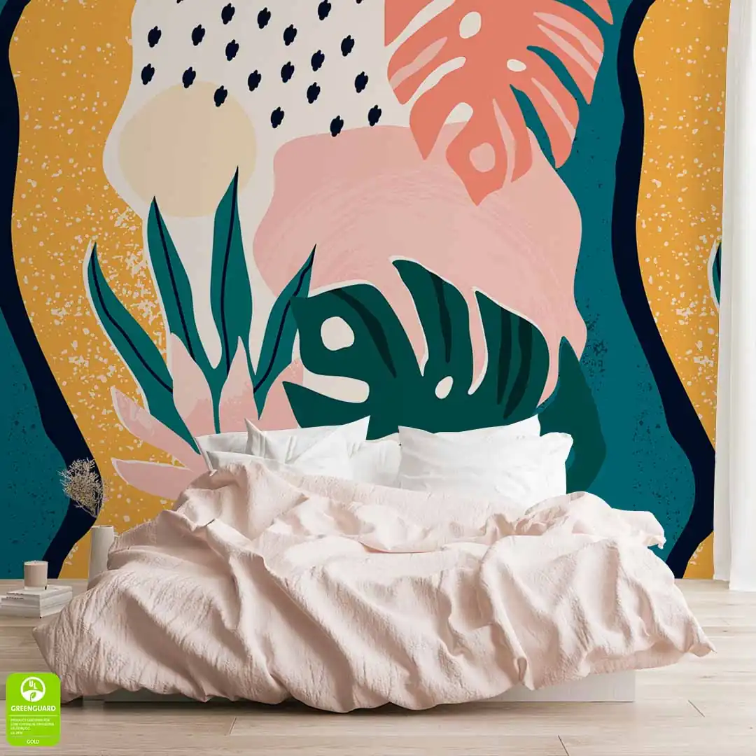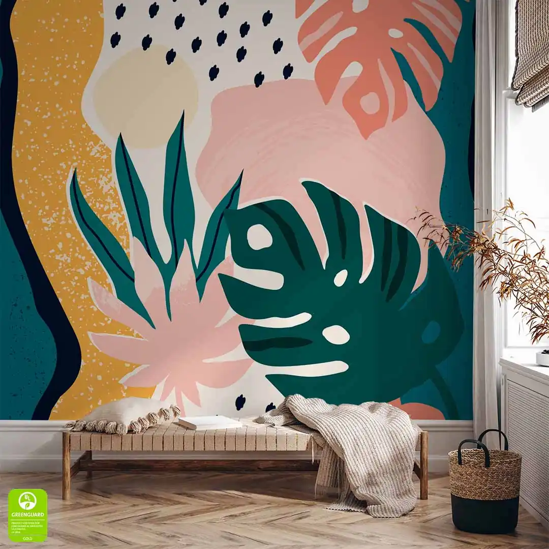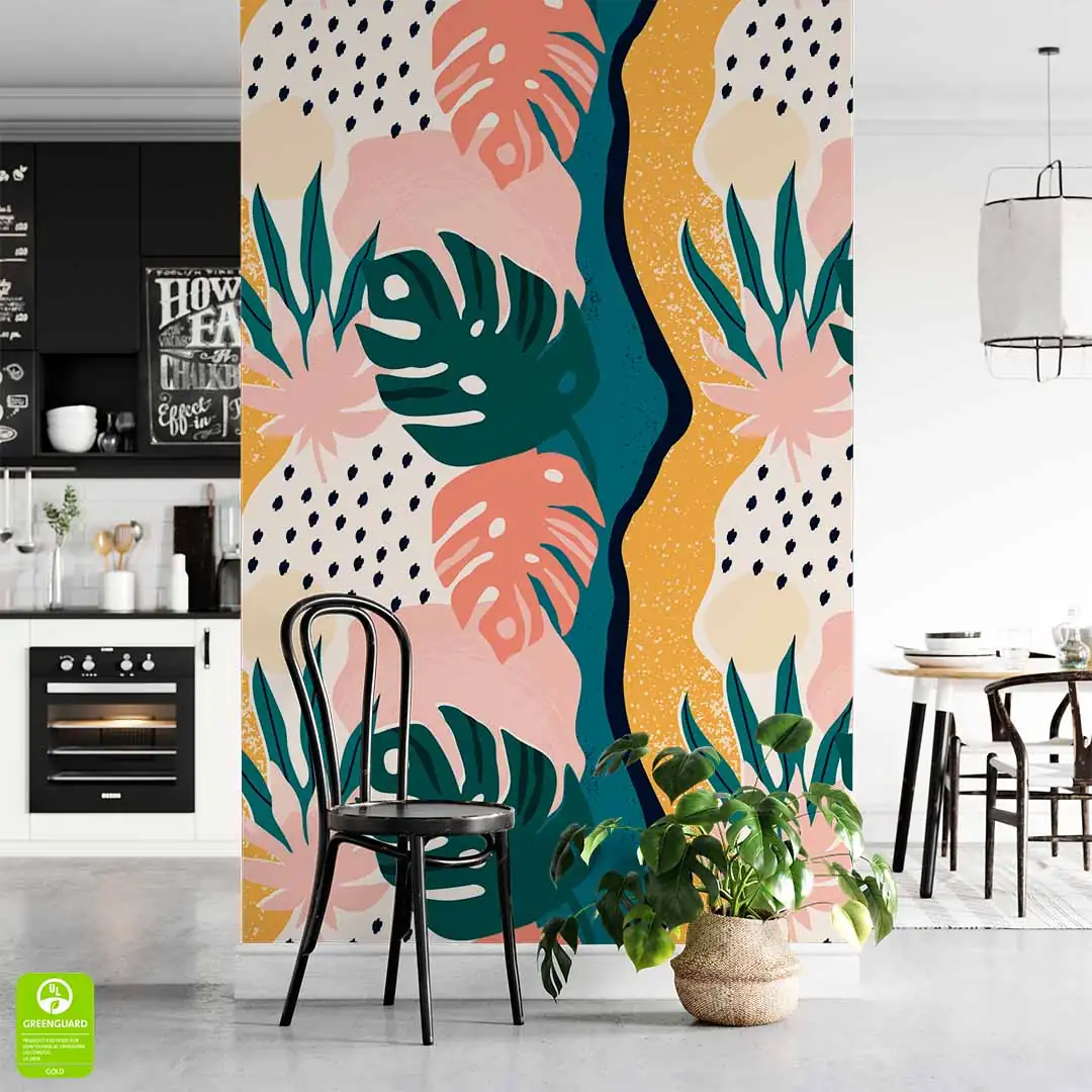 Fototapeta na wymiar tropikalne liście w pastelowych kolorach – nowoczesna tapeta ścienna do salonu, sypialni