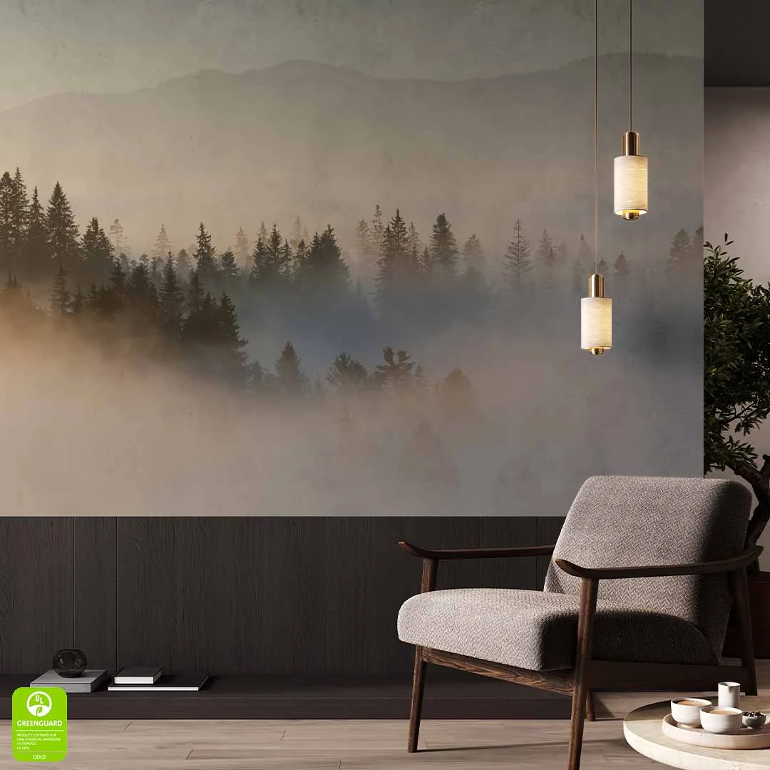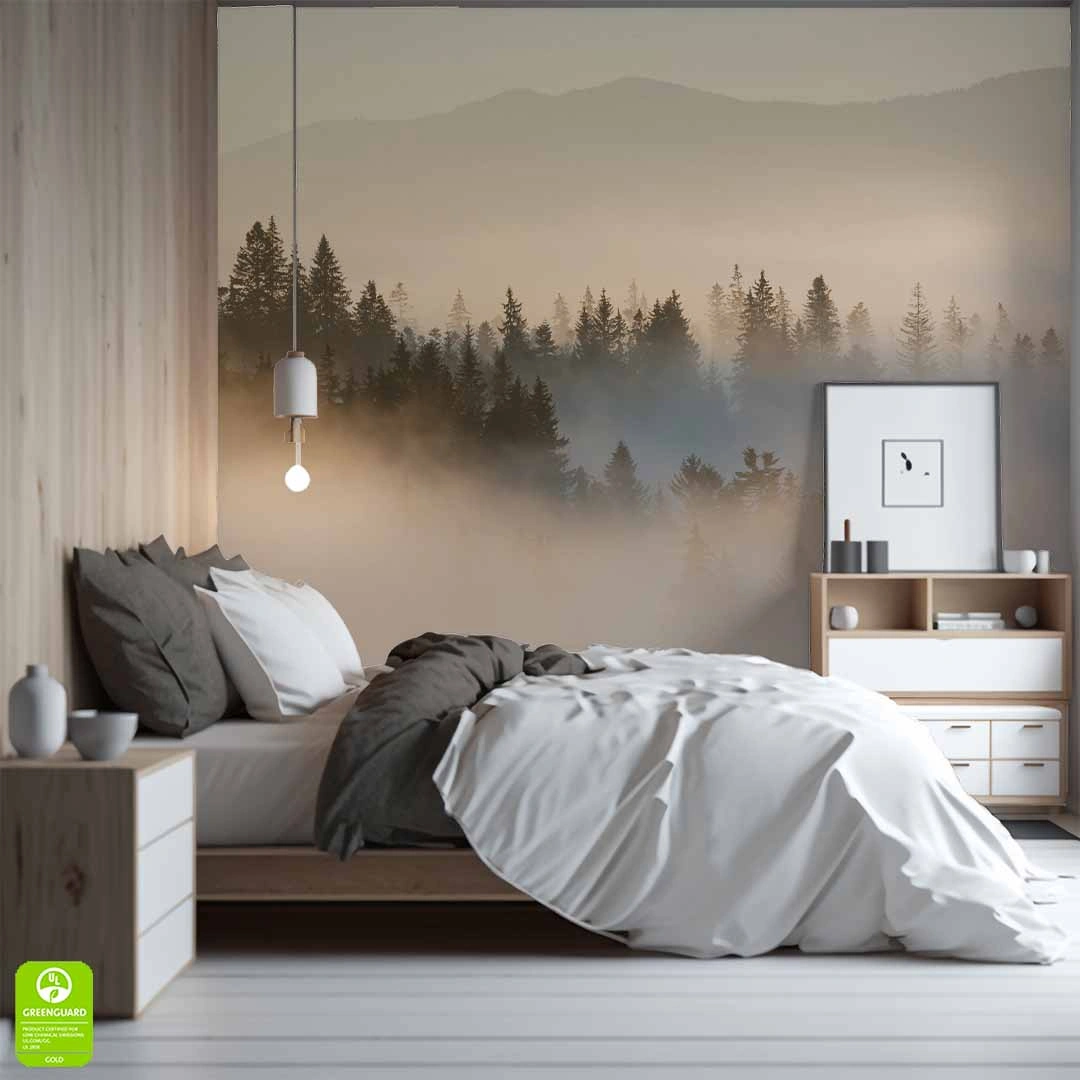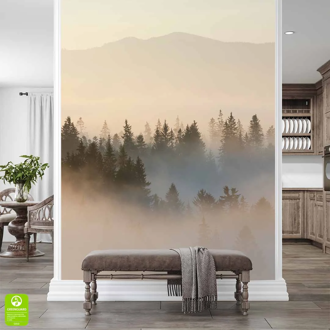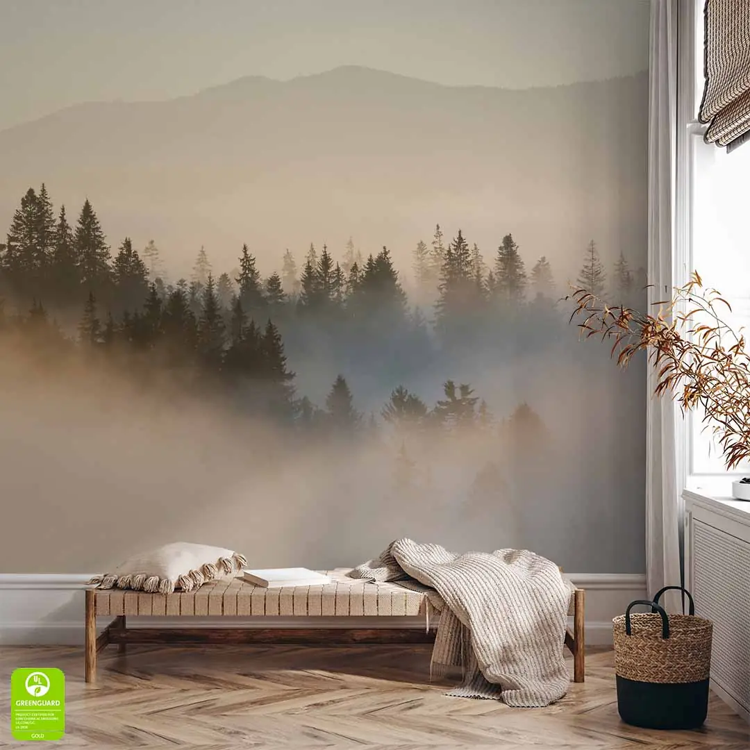 Nowoczesna tapeta ścienna z motywem natury nada Twojemu wnętrzu wyjątkowy charakter. Subtelna mgła unosząca się nad drzewami i górami wprowadza spokój i harmonię. Idealna do salonu, sypialni, biura czy przedpokoju. Wysoka jakość druku gwarantuje wyraziste detale i trwałość.