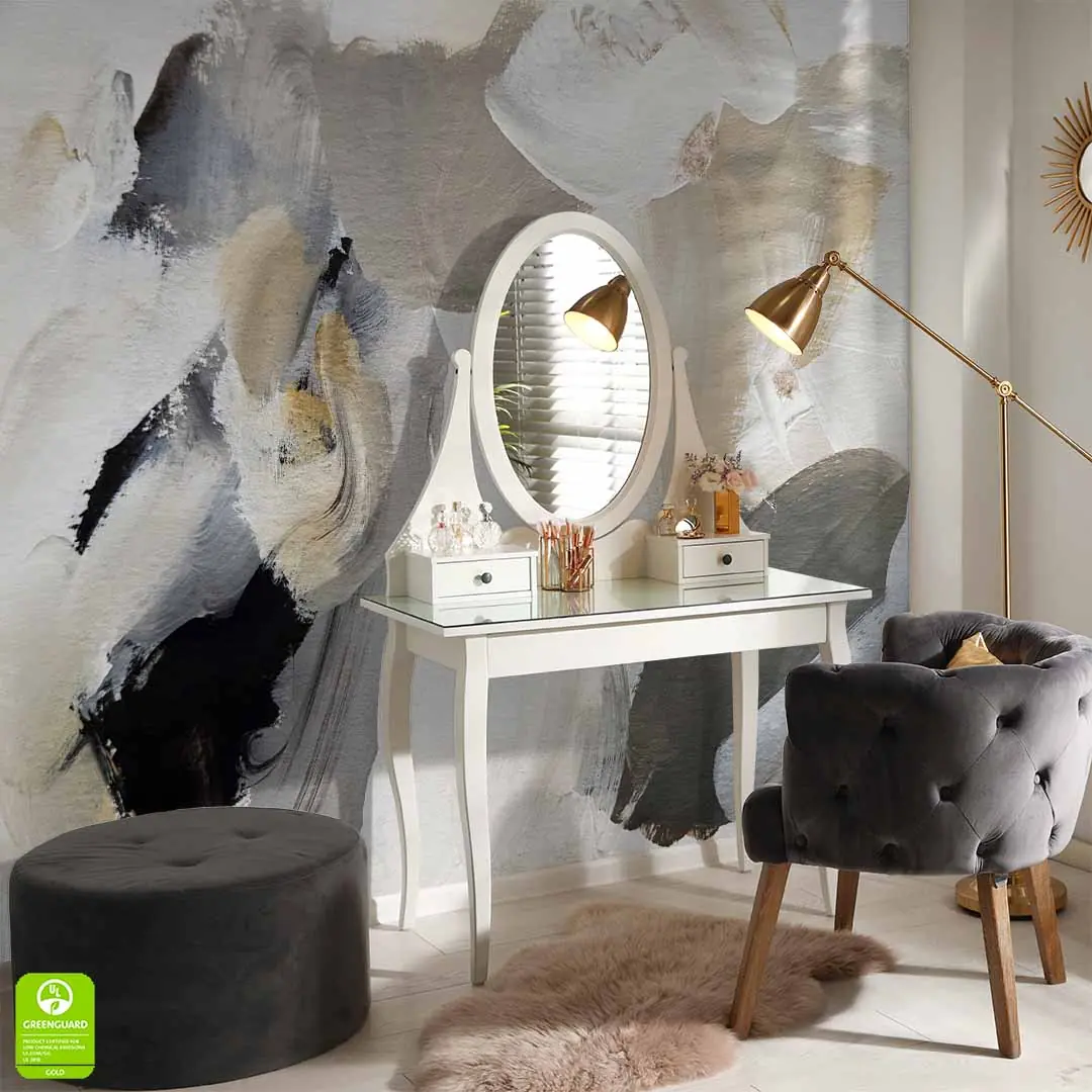 Masz możliwość wyboru materiału pomiędzy tapetą flizelinową a tapetą winylową. Pamiętaj, że tapeta winylowa jest tapetą o podwyższonej wytrzymałości i jest łatwiejsza w utrzymaniu w czystości (ze względu na zmywalność) w stosunku do tapety flizelinowej.