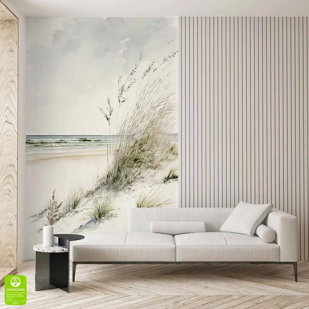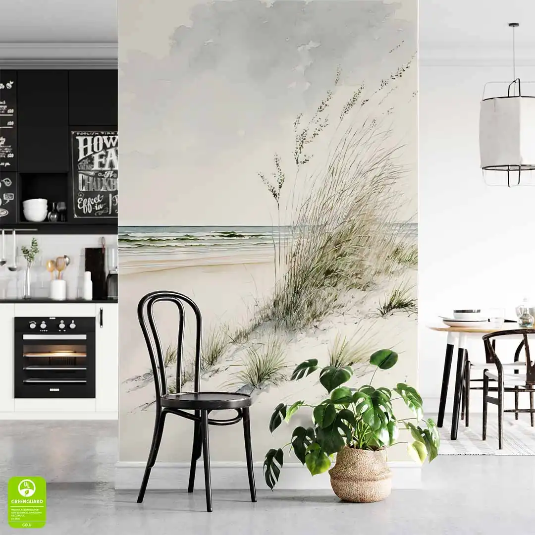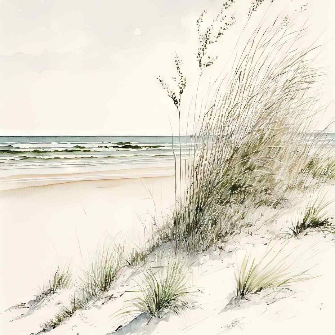 Fototapeta na wymiar – Plaża i Morze z Trawami – Morski Pejzaż do Salonu, Sypialni lub Przedpokoju, Styl skandynawski i boho