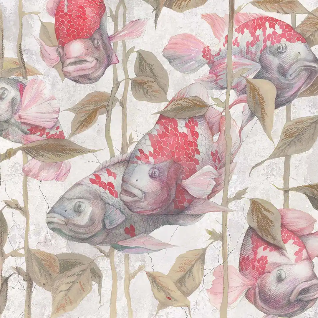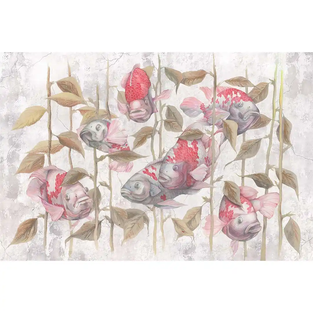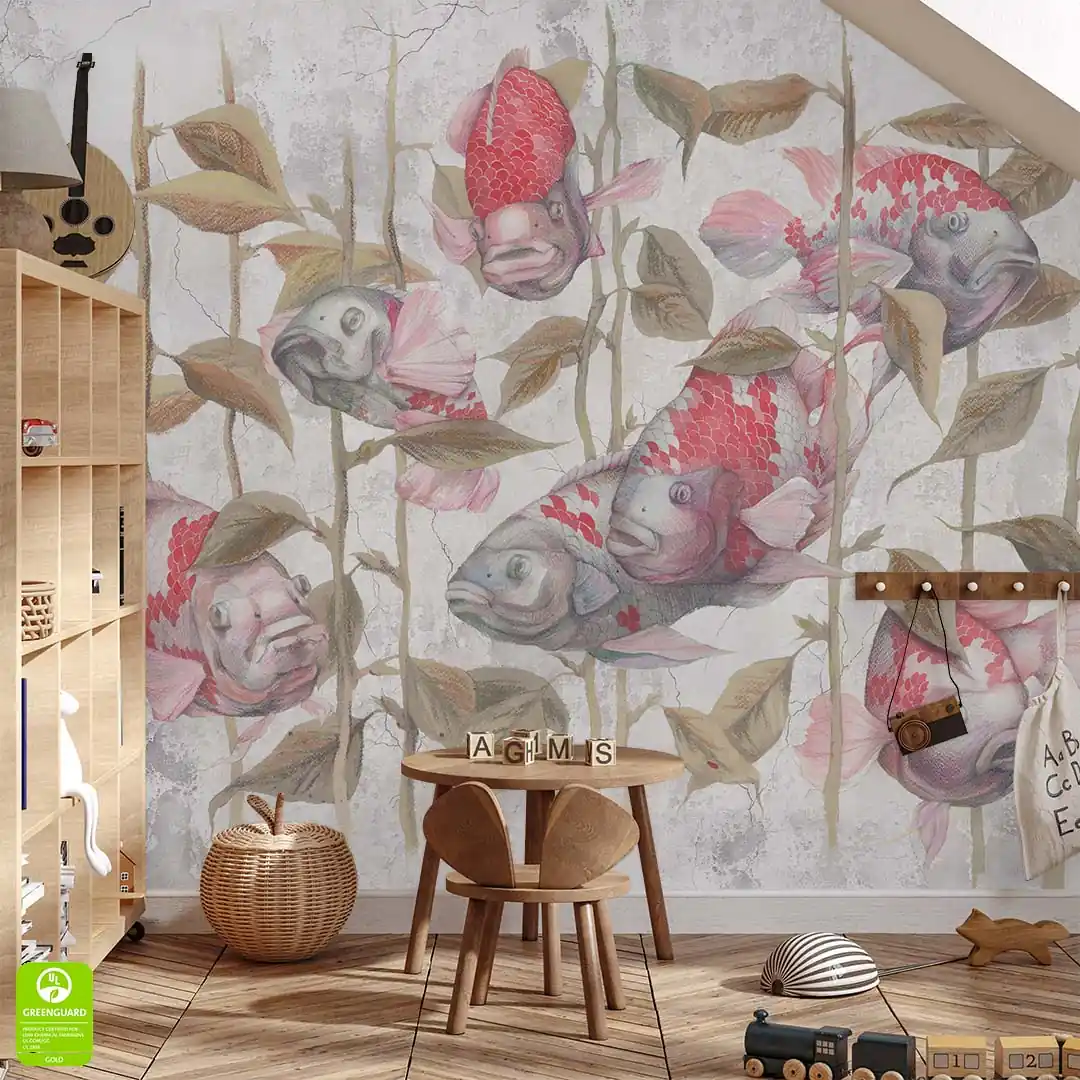 Fototapeta na wymiar Akwarium Ryby Wodorosty - Czerwone i Szare, Pokój Dziecka i Zabaw, Styl Skandynawski i Boho