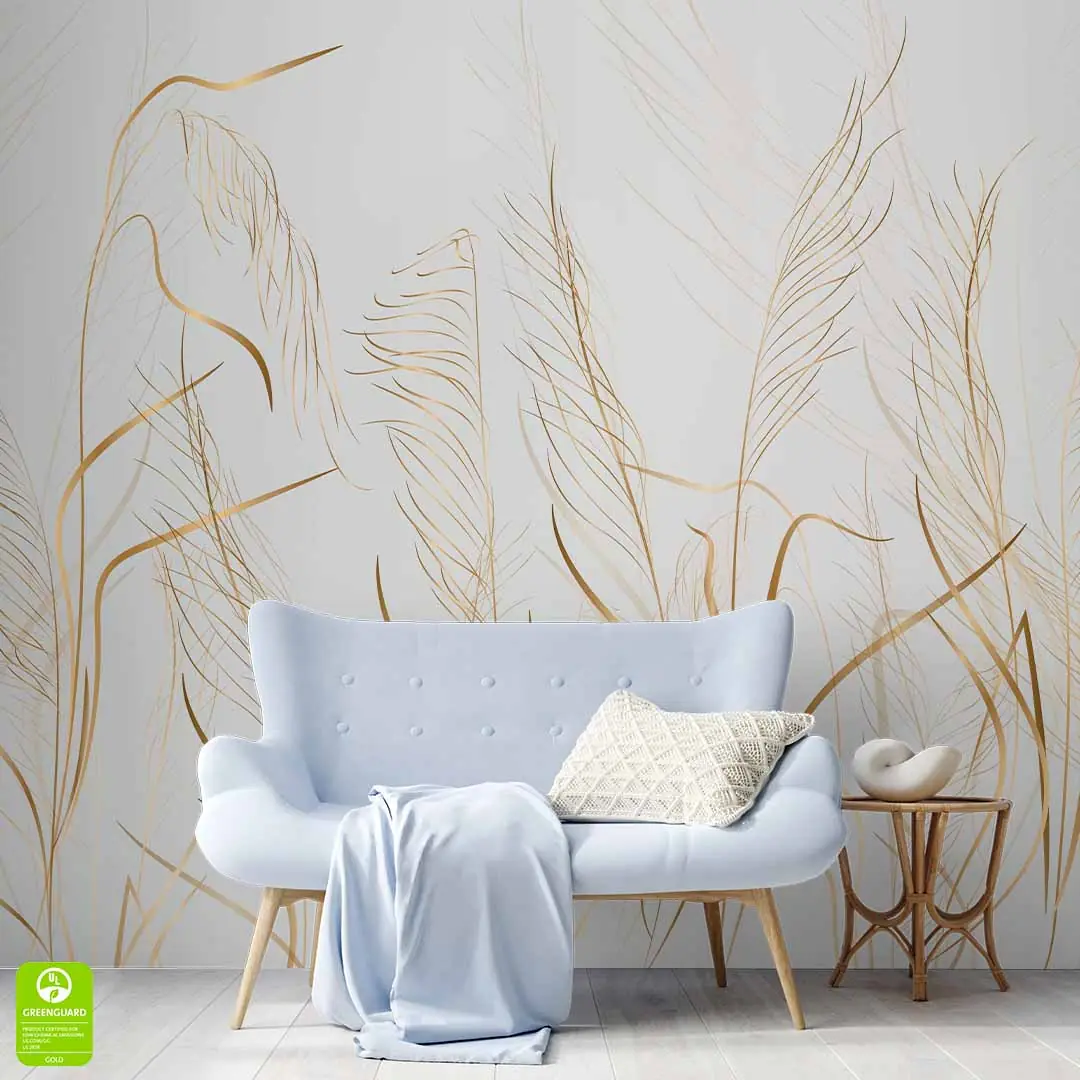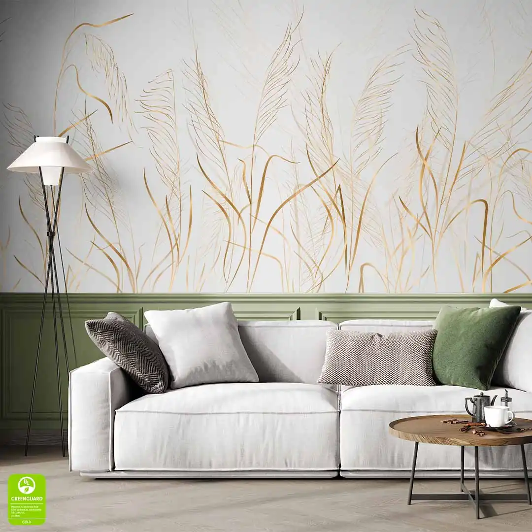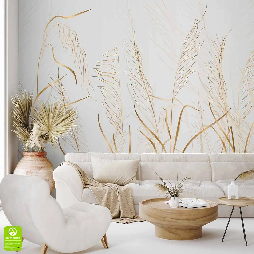 Fototapeta na wymiar Delikatne Złote Trawy, Elegancki Mural w Stylu Glamour do Salonu