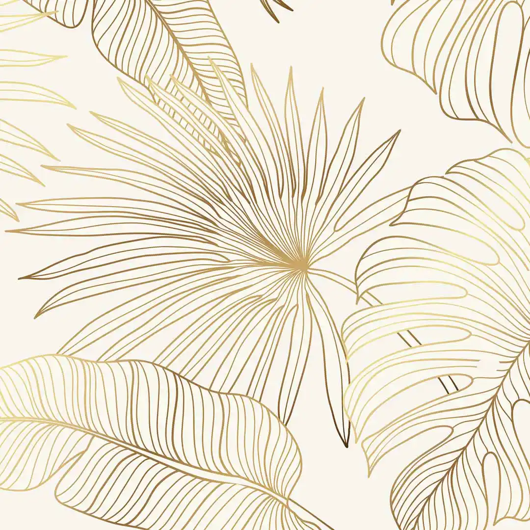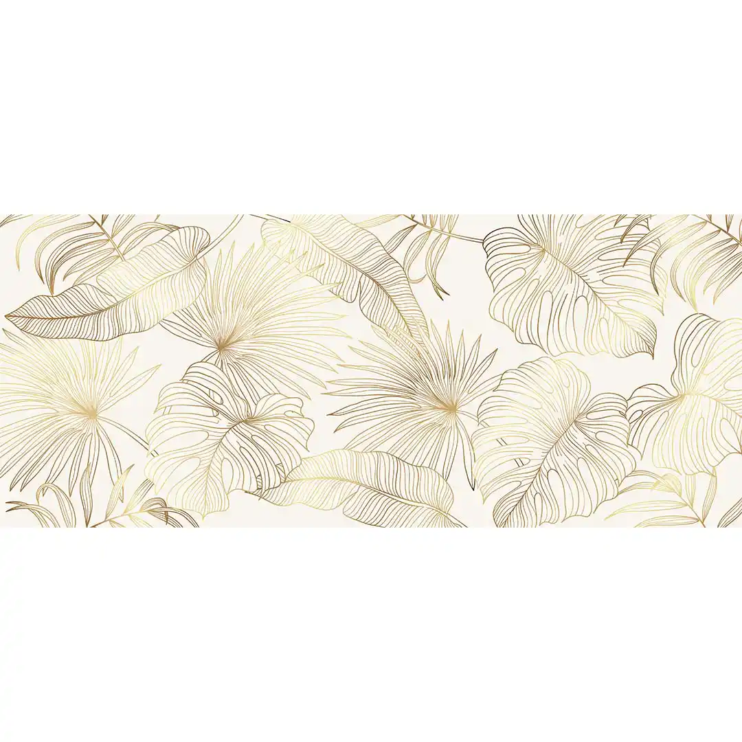 Przygotuj się na dotyk odrobiny luksusu z naszą fototapetą przedstawiającą złote tropikalne liście