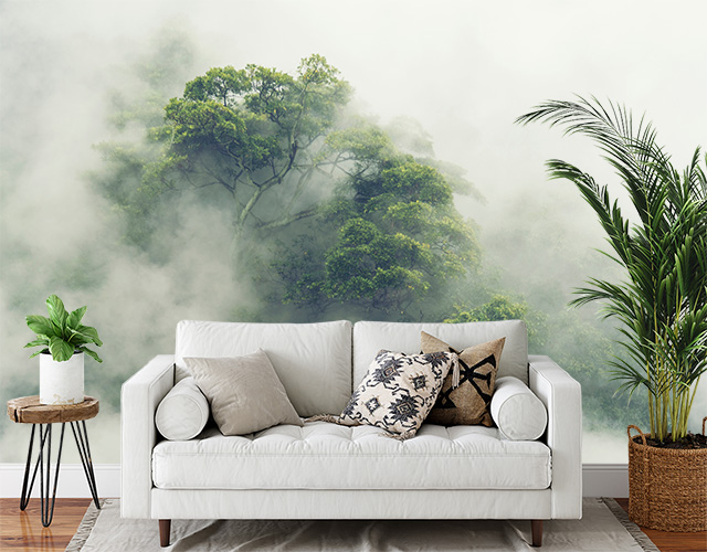 Ten drugi należy do trendu fototapet z lasem we mgle, popularnego wśród osób urządzających nowoczesne wnętrza! Wzory pięknie dopełnią przestrzeń między kuchnią a salonem, jeśli posiadasz pokój z aneksem kuchennym. W przypadku oddzielnego salonu nie będą skupiać na sobie uwagi, dzięki czemu będzie można zrelaksować się po dniu pełnym obowiązków bez męczenia wzroku.
