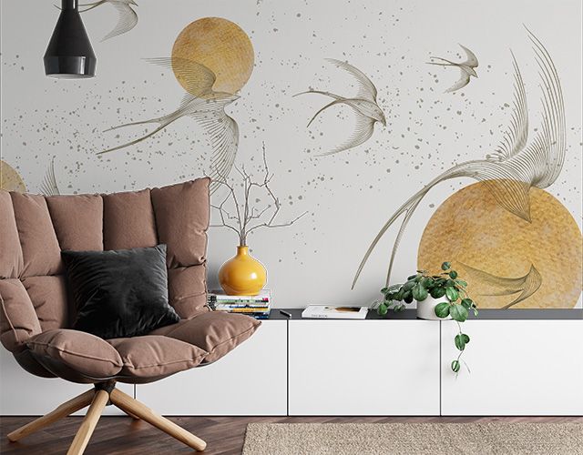 🔍 Fototapeta "Wyjątkowy motyw jaskółek na tle nieba"