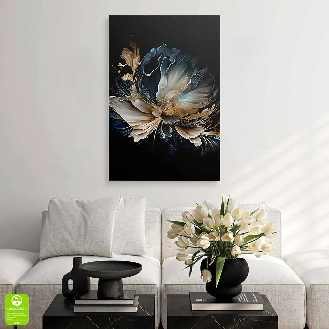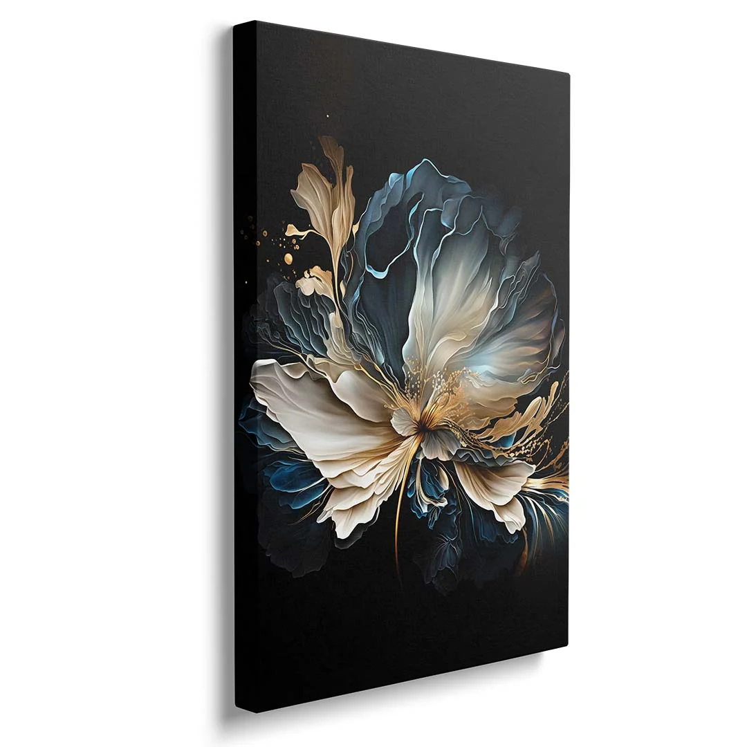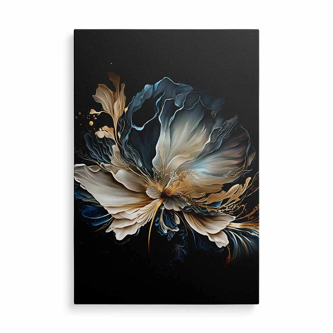 Obraz na płótnie baśniowy kwiat to wyjątkowa dekoracja, która wprowadza do wnętrza nutę magii i luksusu. Ciemne tło podkreśla subtelne detale kwiatowego wzoru, tworząc niezwykle elegancki efekt.
