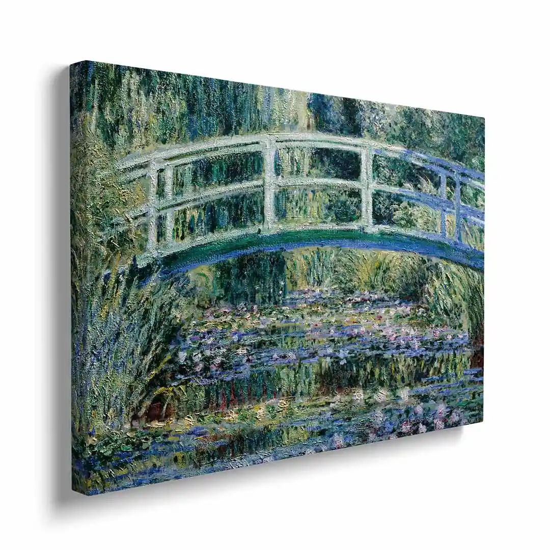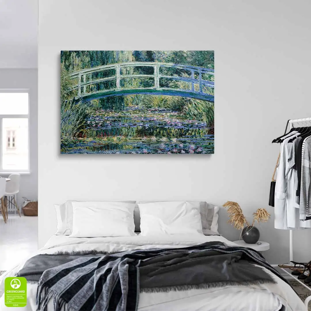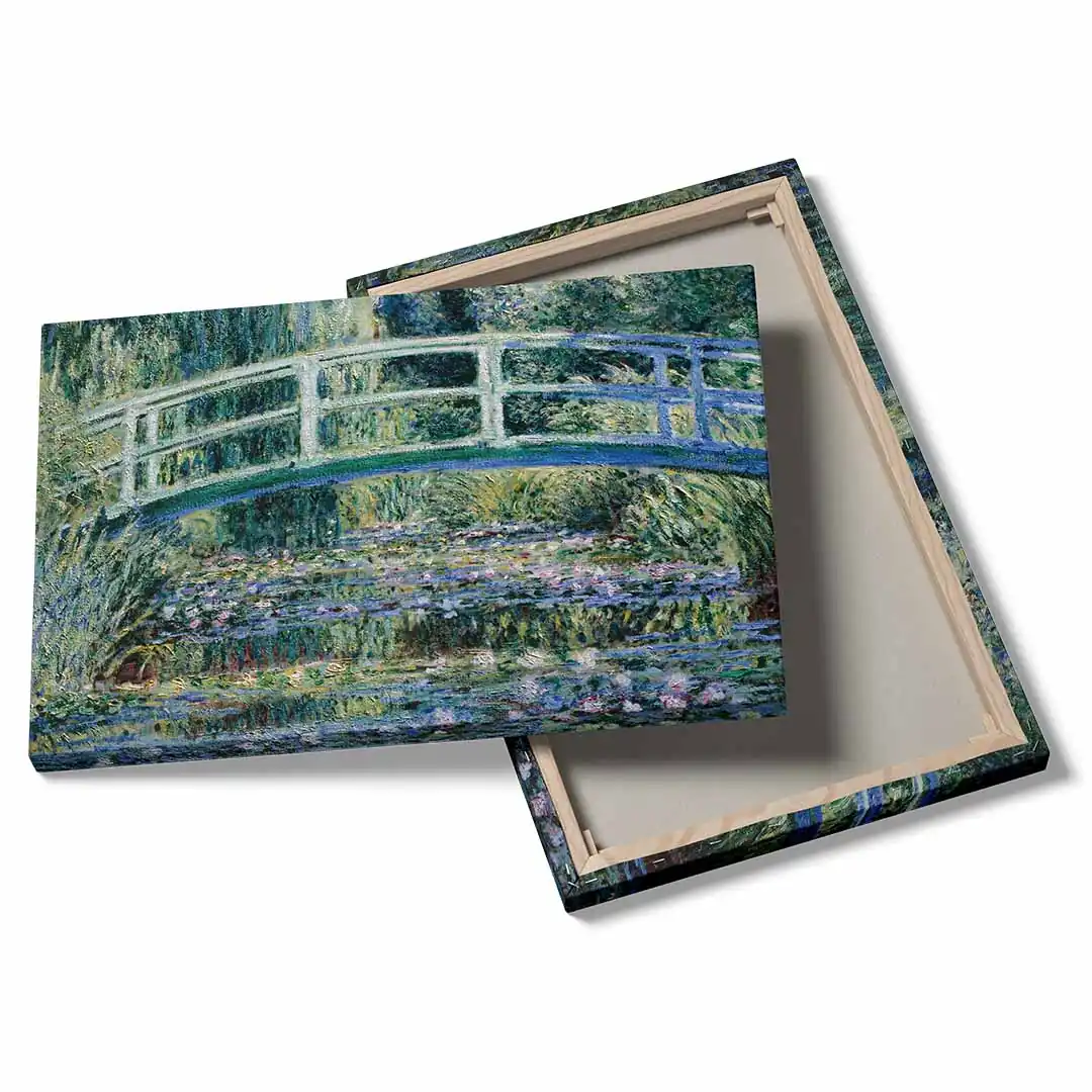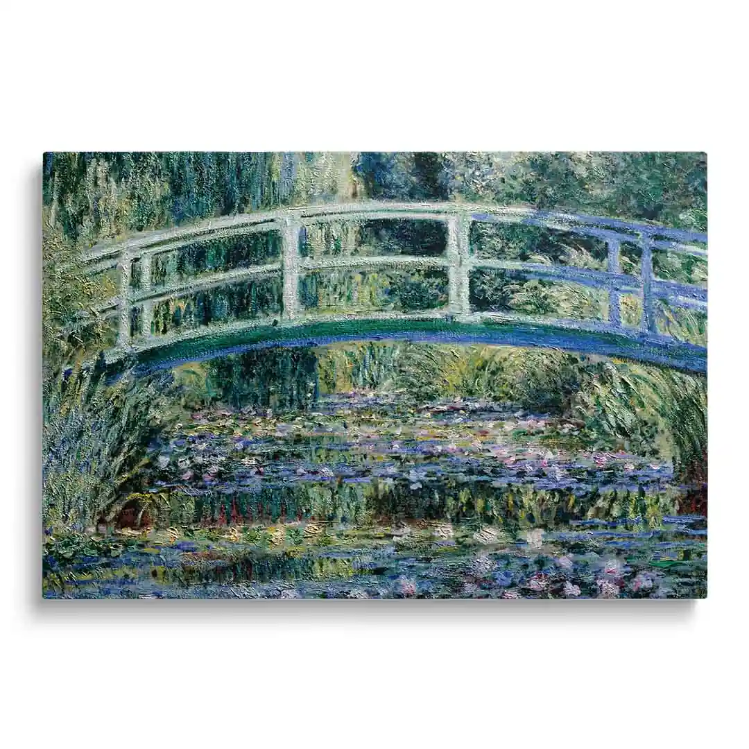 Obraz na płótnie Lilie wodne i most japoński [Reprodukcja] sprawdzi się zarówno w salonie, sypialni, jadalni czy na przykład jako obraz na płótnie do biura i będzie pasować do wielu stylów wykończenia wnętrz.