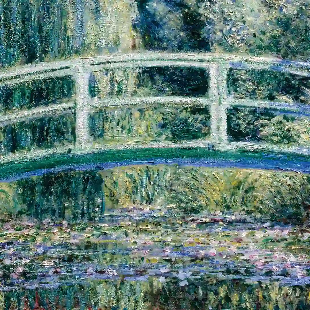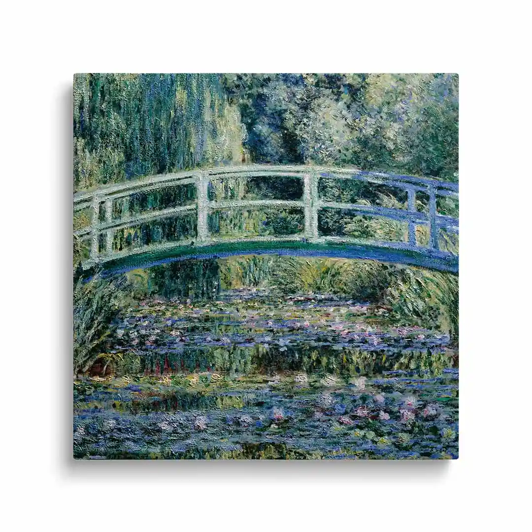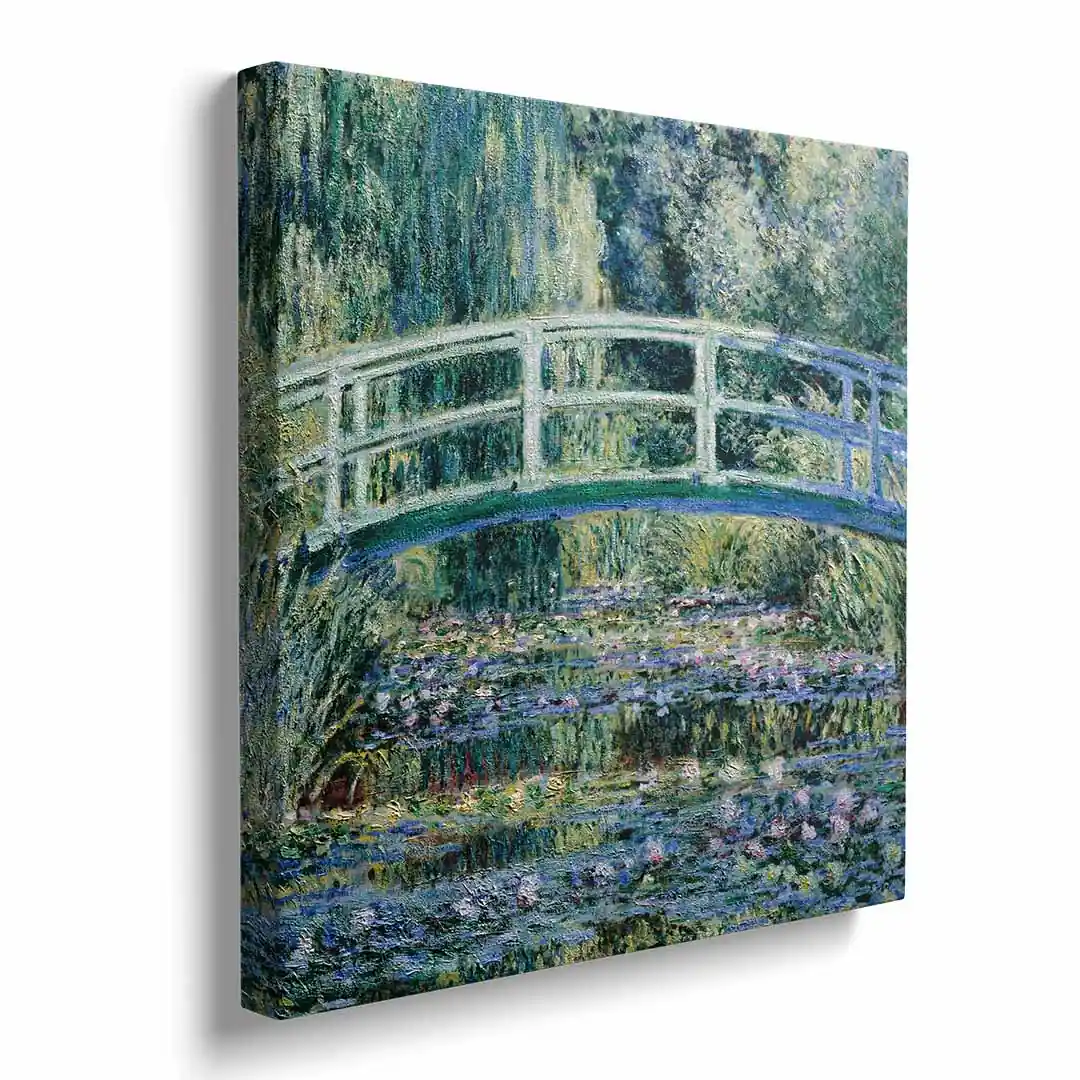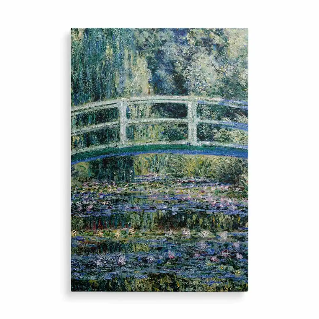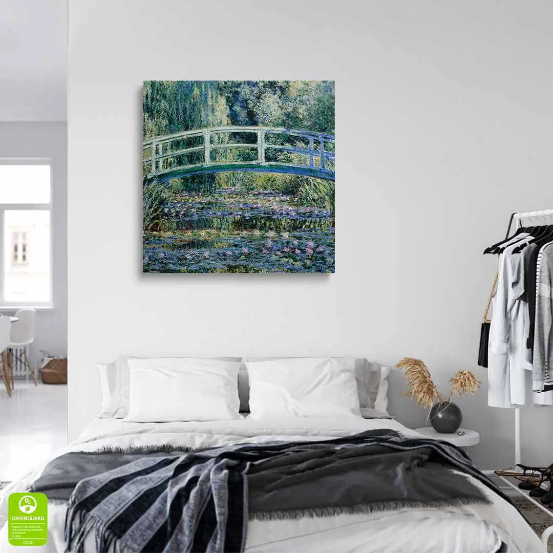 Obraz na płótnie Lilie wodne i most japoński [Reprodukcja] sprawdzi się zarówno w salonie, sypialni, jadalni czy na przykład jako obraz na płótnie do biura i będzie pasować do wielu stylów wykończenia wnętrz.
