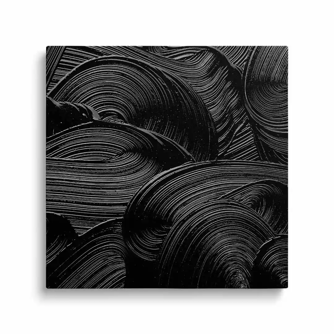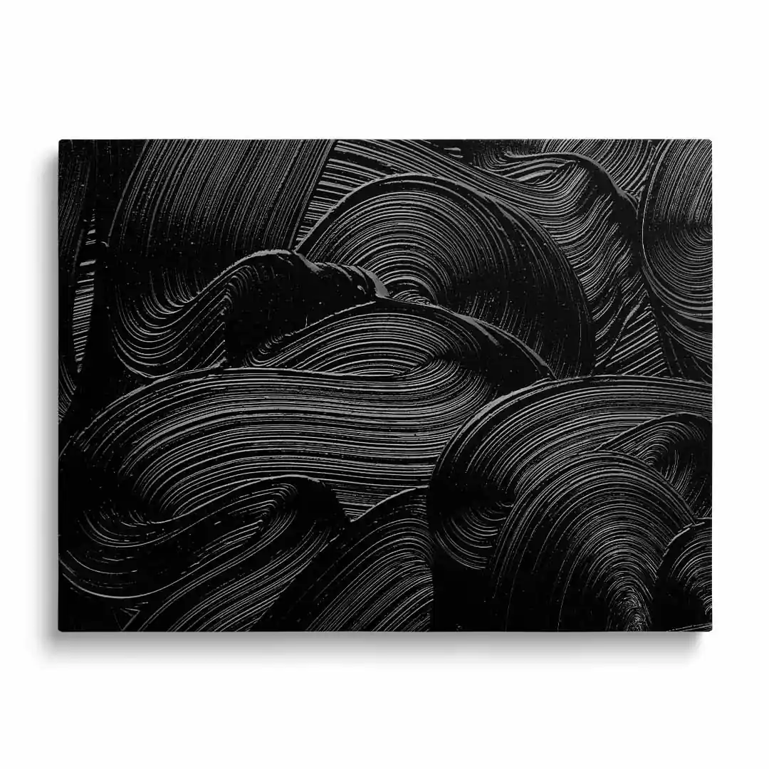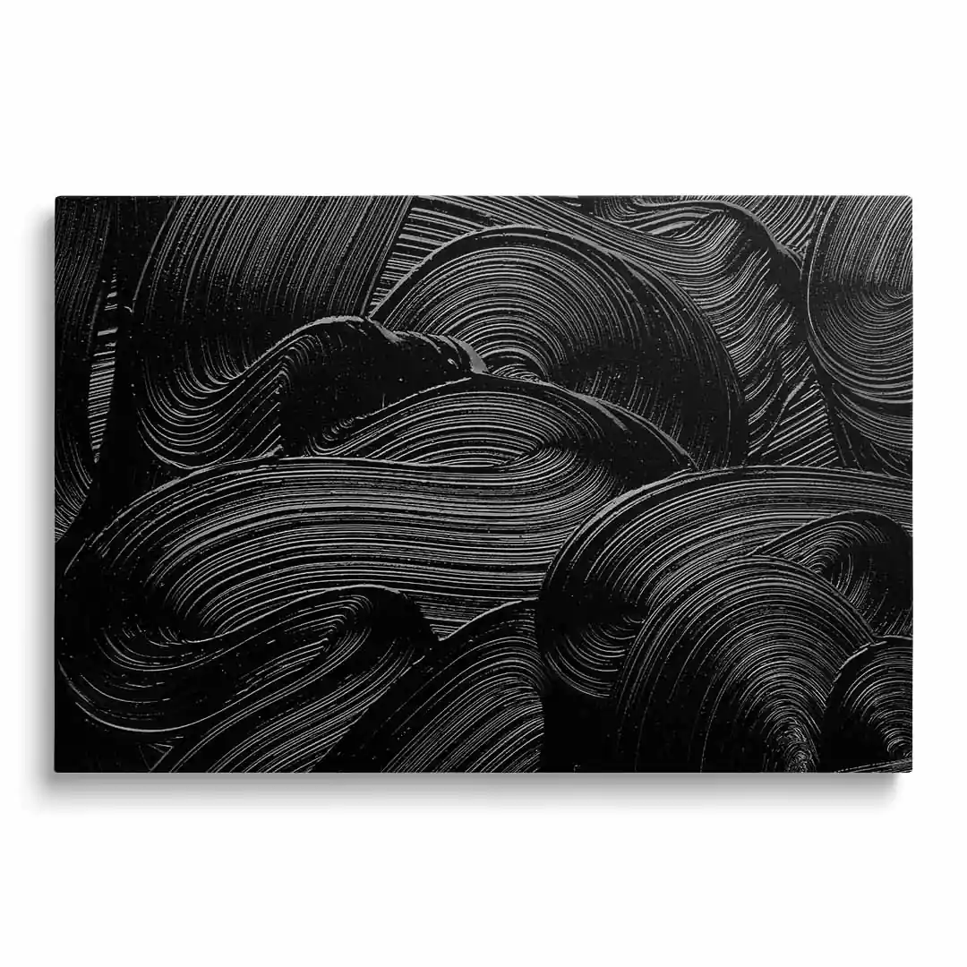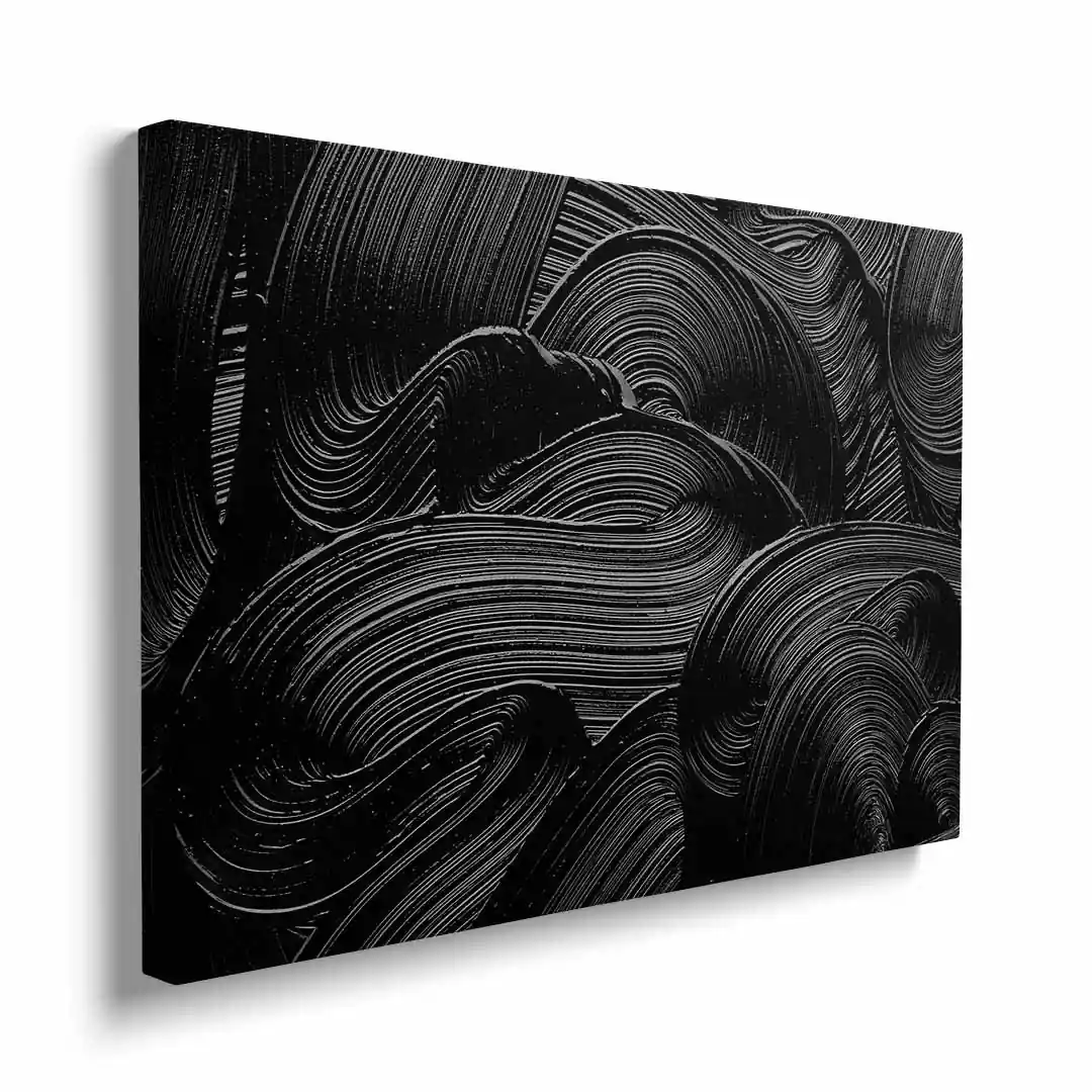 Ten obraz na płótnie przedstawia abstrakcyjną kompozycję w intensywnych czarnych odcieniach, które wprowadzają do wnętrza nowoczesny i wyrafinowany klimat. Subtelna gra faktur i kontrastów przyciąga wzrok, zachęcając do refleksji i interpretacji. To doskonała propozycja dla miłośników minimalistycznej sztuki oraz eleganckich dekoracji. Obraz nadaje pomieszczeniu charakter i sprawia, że staje się ono bardziej intrygujące.