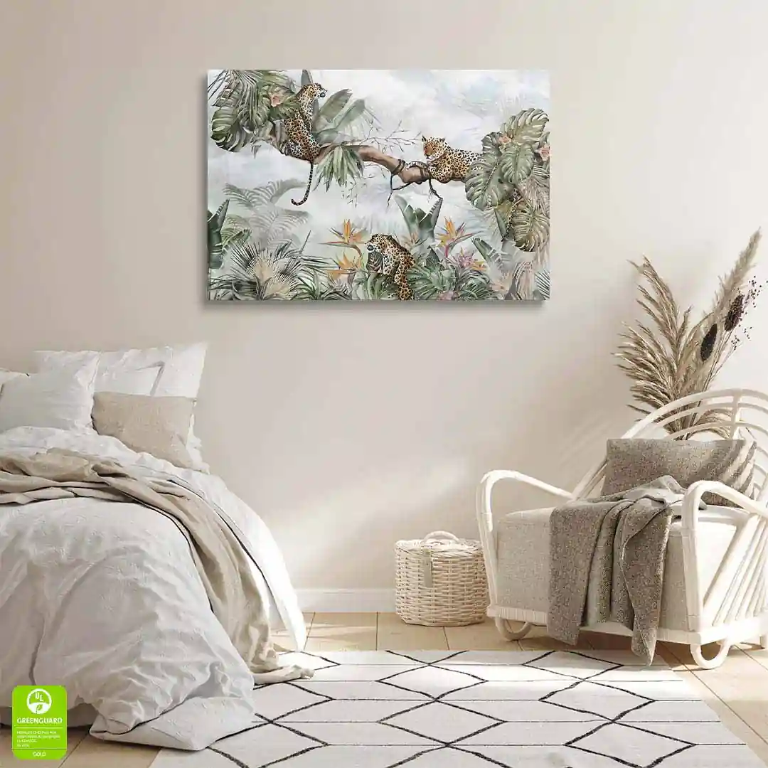 Egzotyczna roślinność, soczysta zieleń i aura tajemniczości – właśnie to kryje w sobie obraz na płótnie Dżungla. Ta dekoracja wprowadza do wnętrza powiew świeżości i dzikości natury, pozwalając poczuć się jak podczas wyprawy do tropikalnego świata. To idealna propozycja dla osób, które chcą przełamać codzienną rutynę mocnym, energetycznym akcentem.