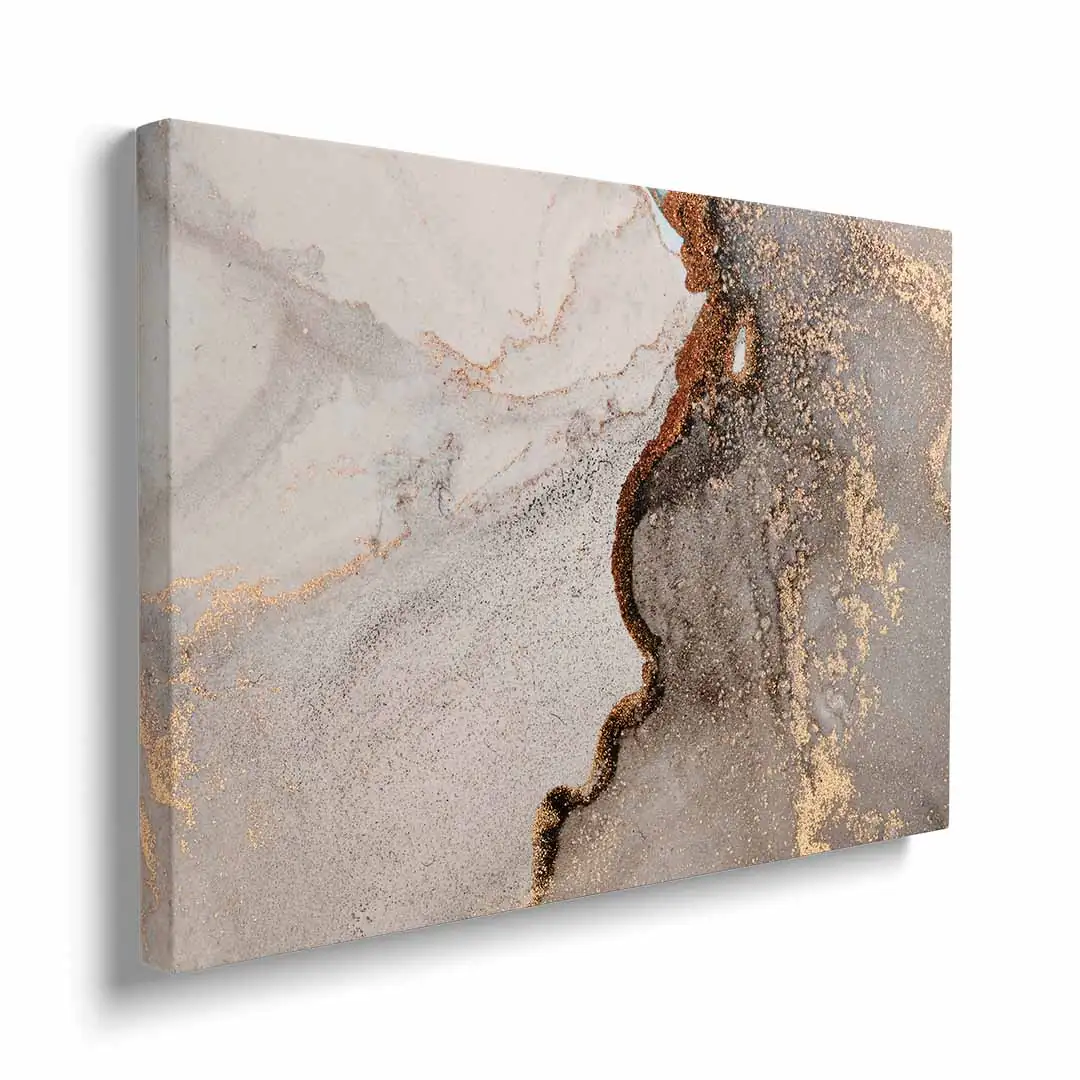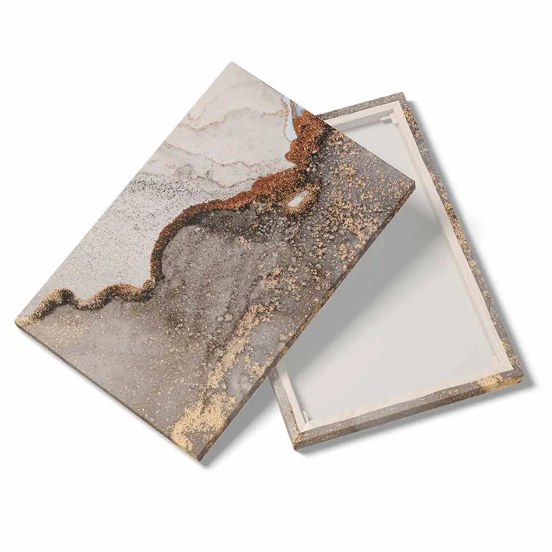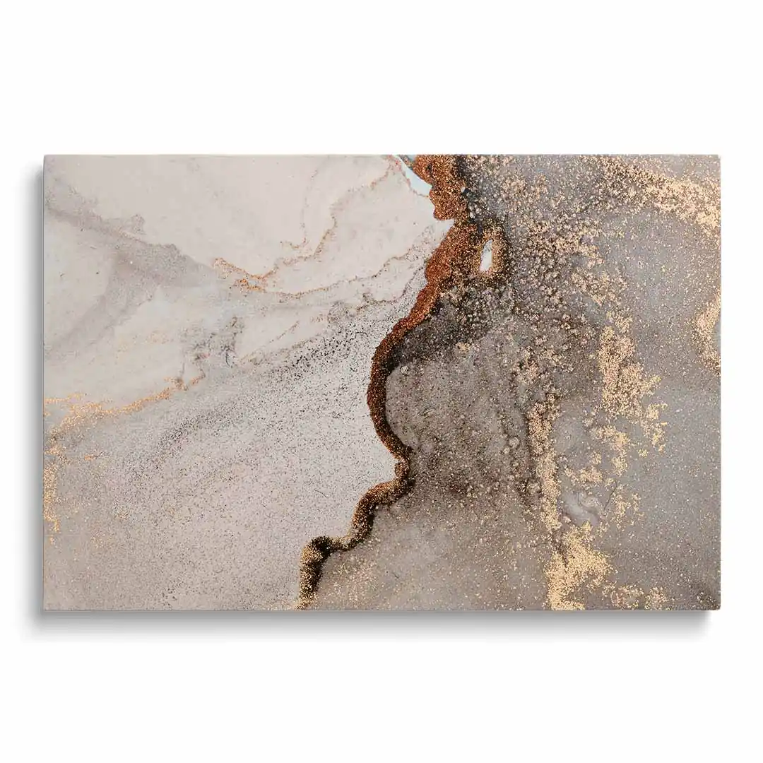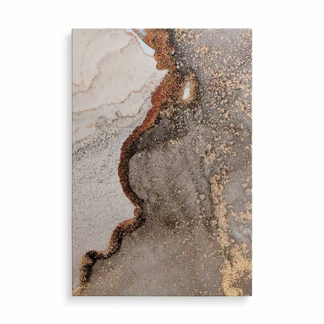 - techniką druku - proces drukowania wykorzystuje inne metody tworzenia kolorów (tzw. "przestrzeń barw") niż te, które stosowane są na ekranach komputera; kolory drukowane mogą wyglądać również nieco inaczej na różnych materiałach (np. canvasie, flizelinie, papierze czy szkle itp.) i przy użyciu różnych tuszy, w naszym przypadku tuszy do druku UV; złote elementy nie są wybiórczo metalizowane - efekt uzyskany jest poprzez wydruk tekstury w kolorze złota;