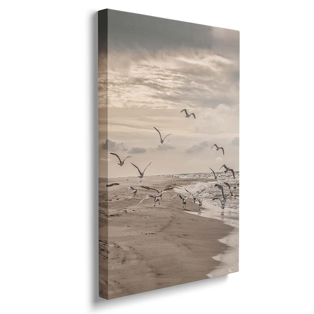 Obraz na płótnie - Mewy odlatujące z plaży nad Bałtykiem - Nadmorski krajobraz