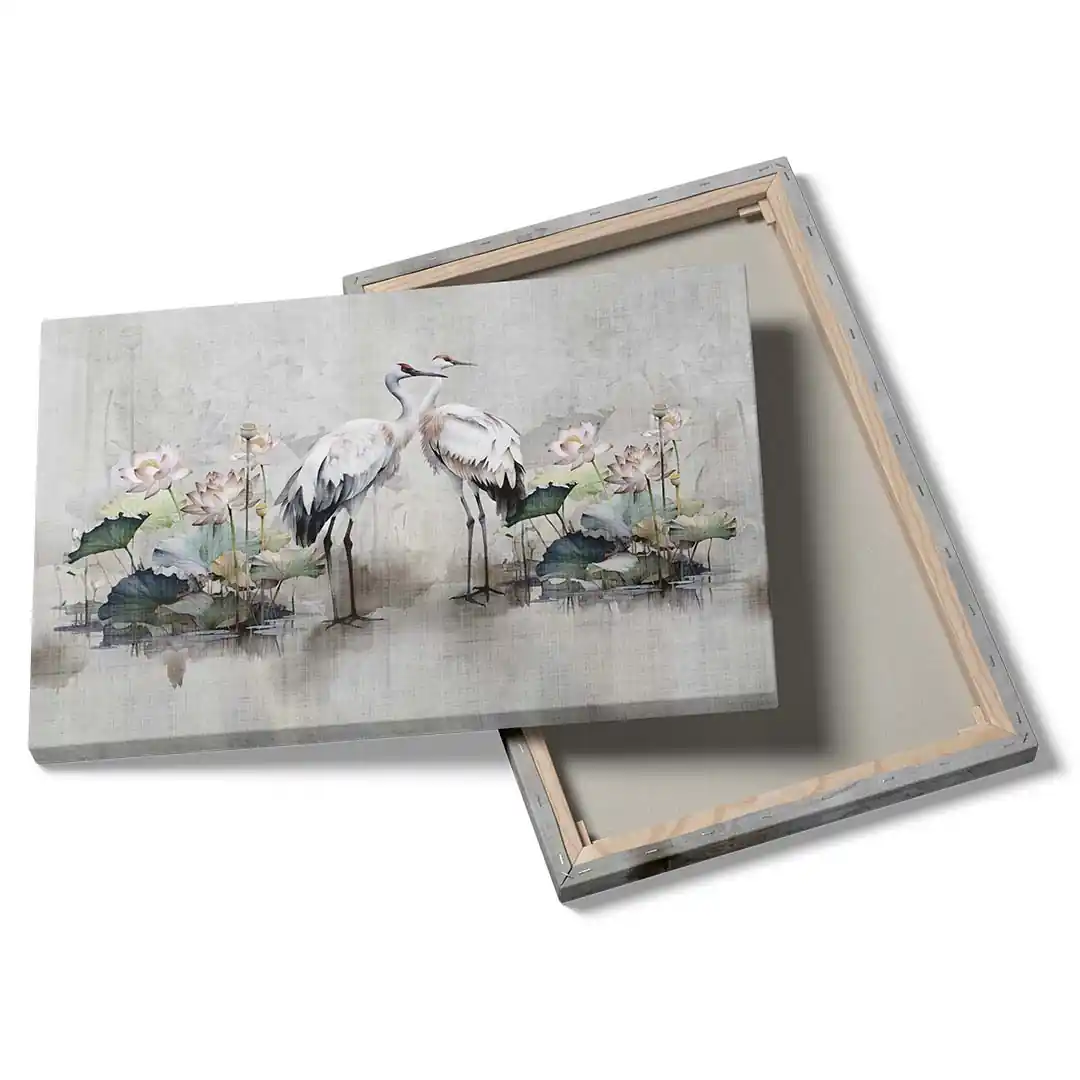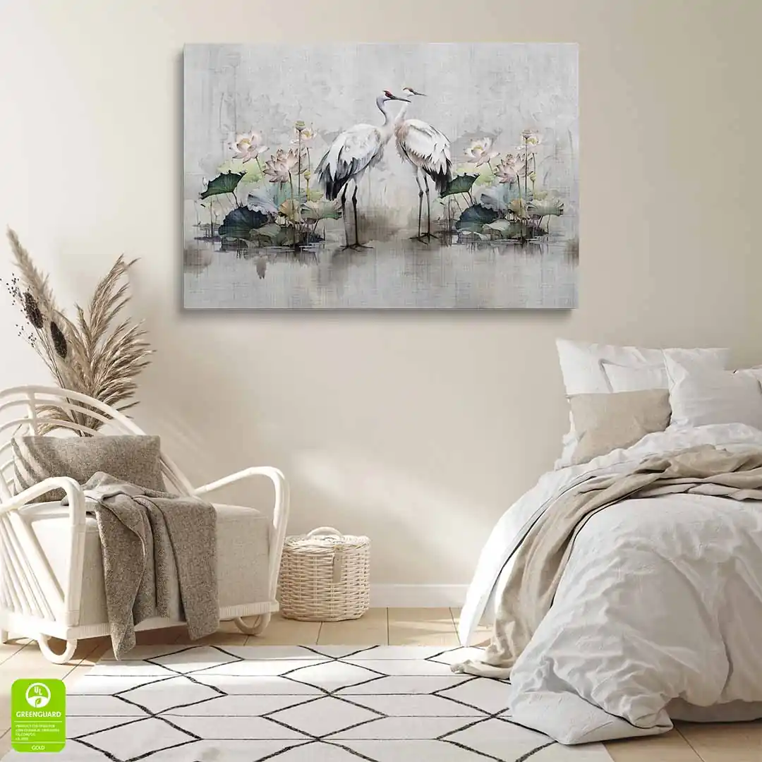 Żurawie od wieków symbolizują wierność i długowieczność. Umieszczony na ścianie obraz na płótnie para żurawi może stać się nie tylko piękną ozdobą, ale też talizmanem, który podkreśla rodzinne wartości i harmonię w domu. To idealny wybór do eleganckich przestrzeni, które mają emanować spokojem i klasą.