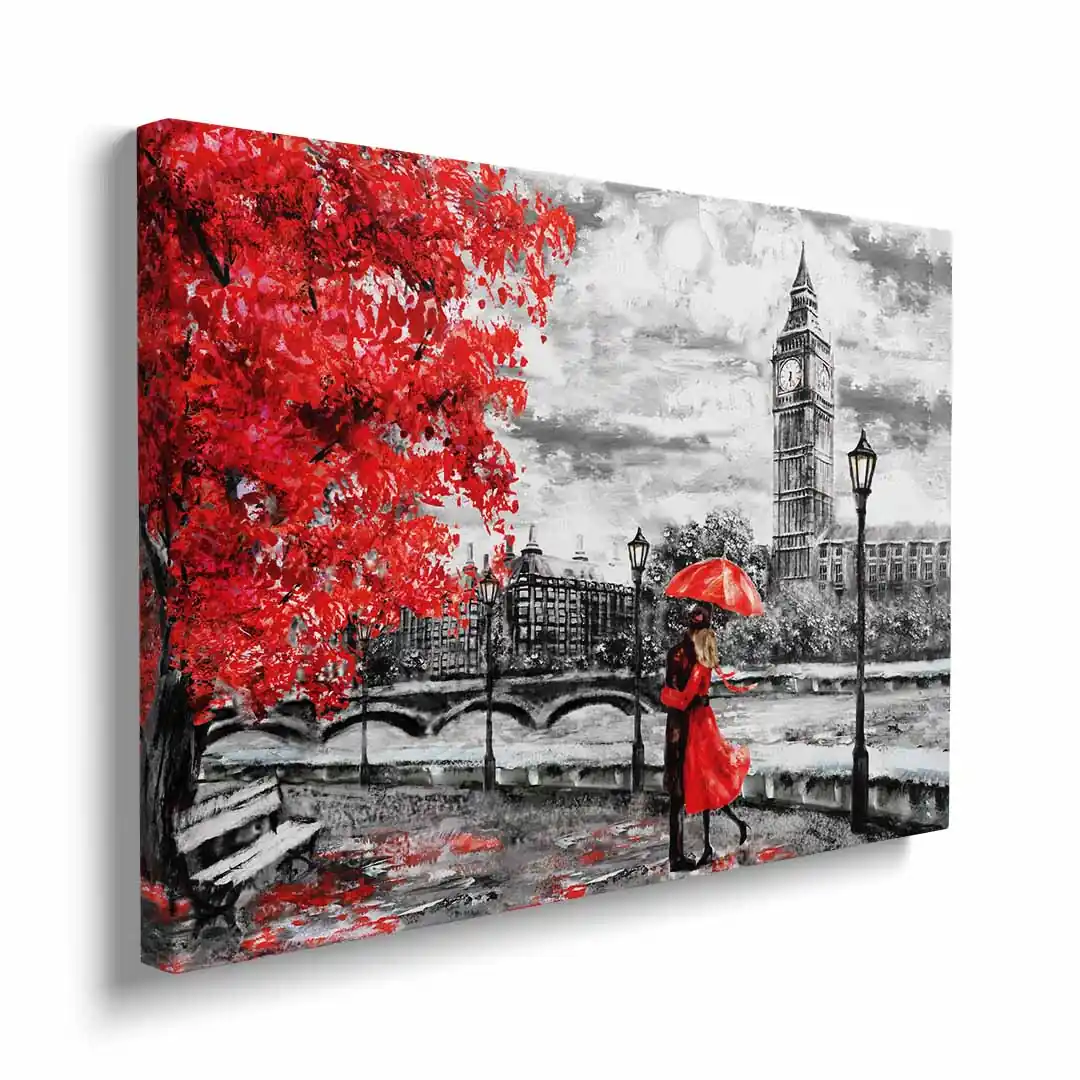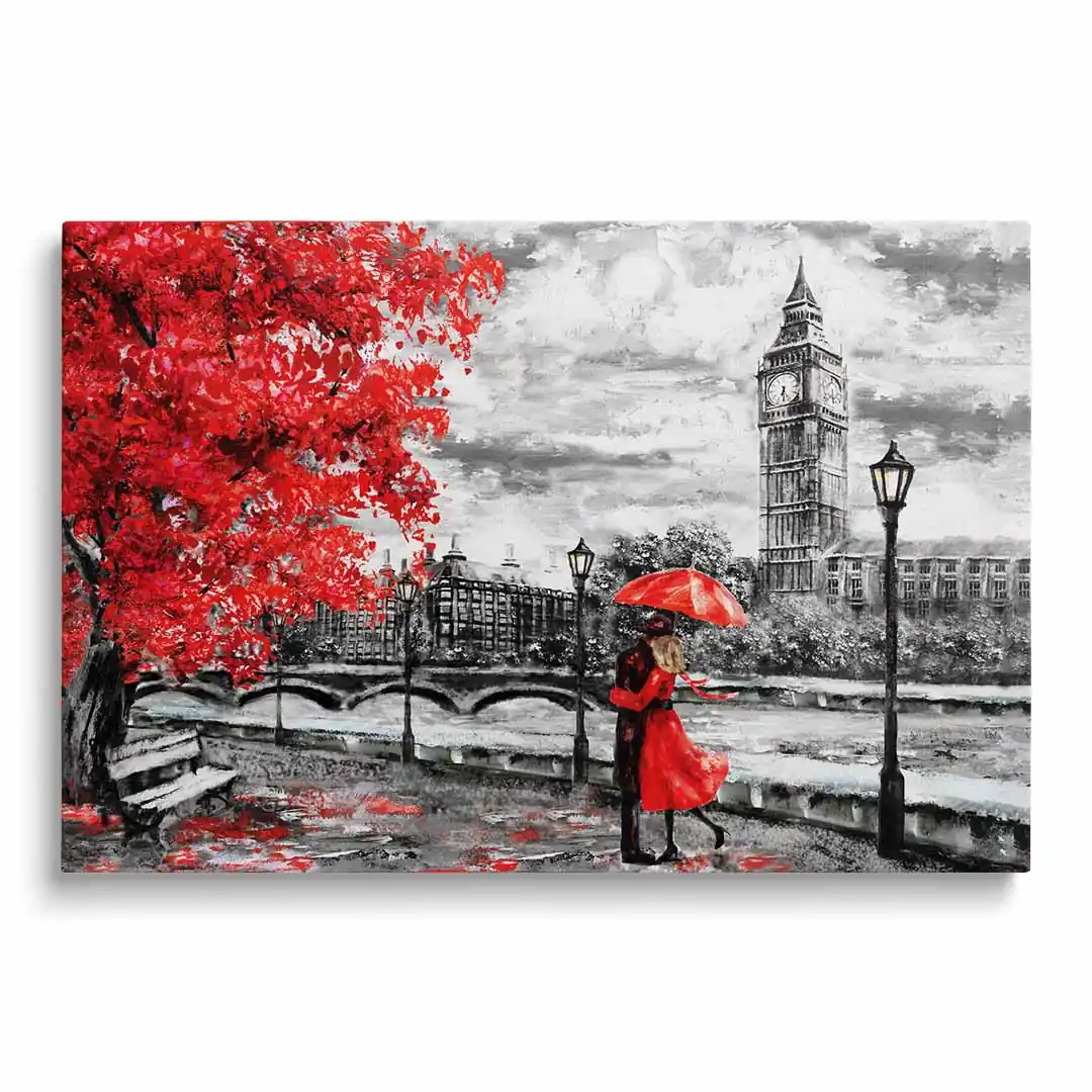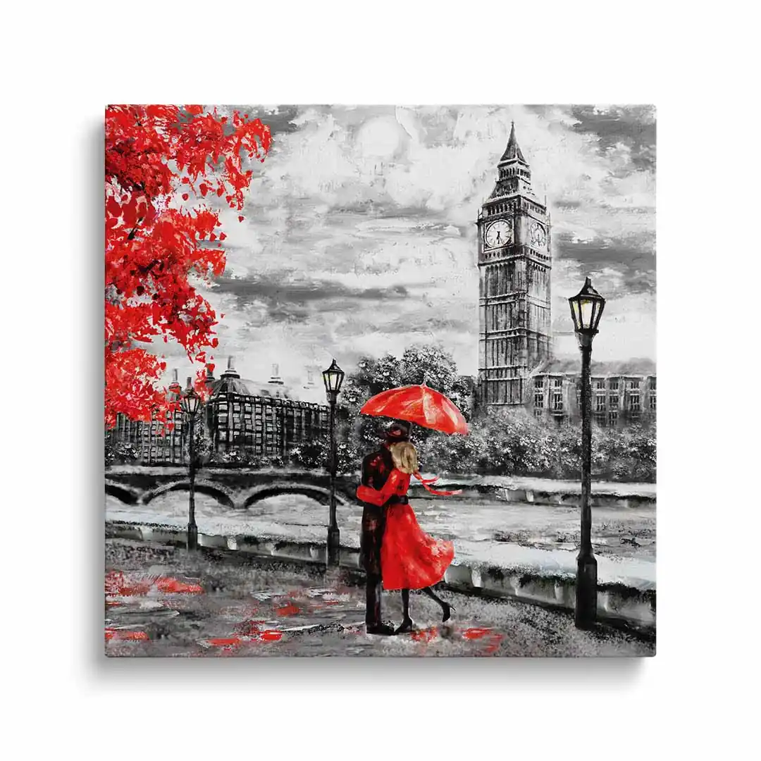Para na obrazie emanuje bliskością i spokojem, co sprawia, że dekoracja doskonale pasuje do różnorodnych wnętrz. Obraz na płótnie z motywem pary w Londynie świetnie uzupełni zarówno nowoczesne, jak i klasyczne aranżacje. To propozycja dla tych, którzy cenią subtelne, a zarazem wyraziste akcenty dekoracyjne. Wprowadź do swojego domu lub biura odrobinę londyńskiego uroku i romantyzmu.