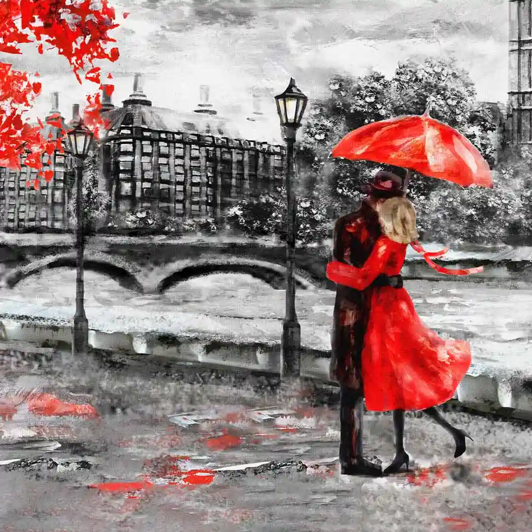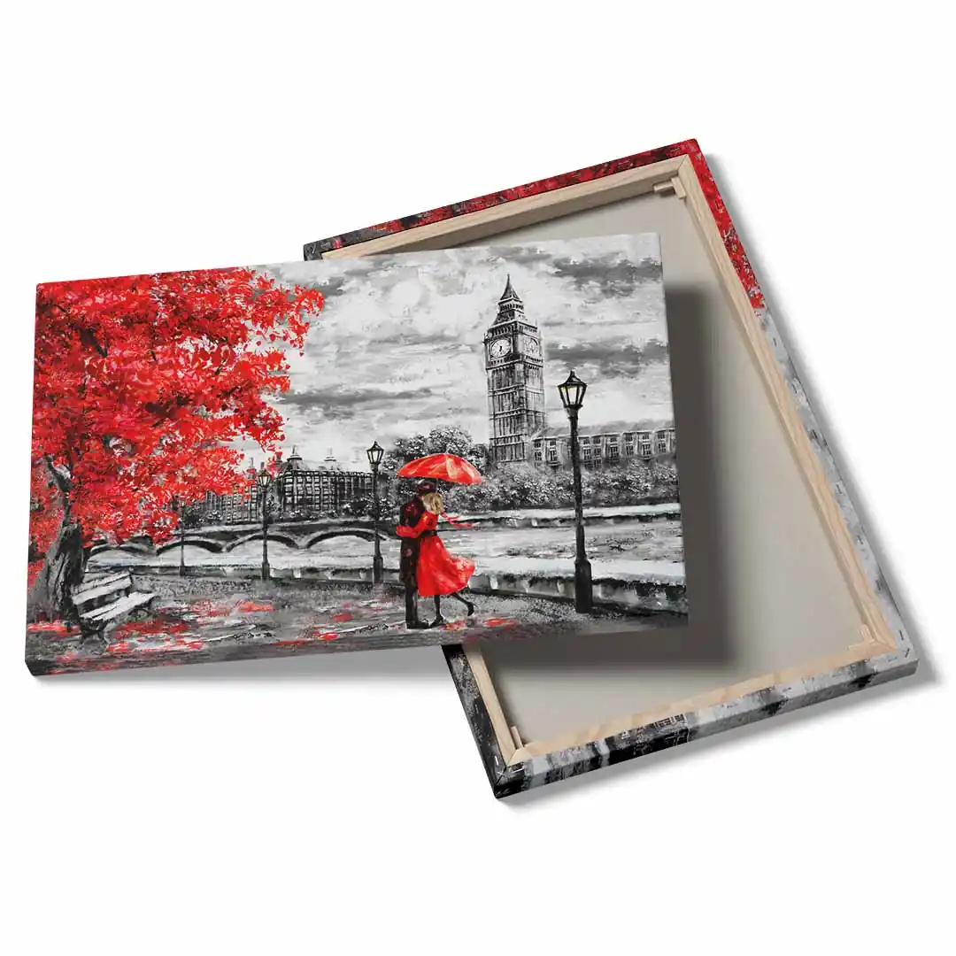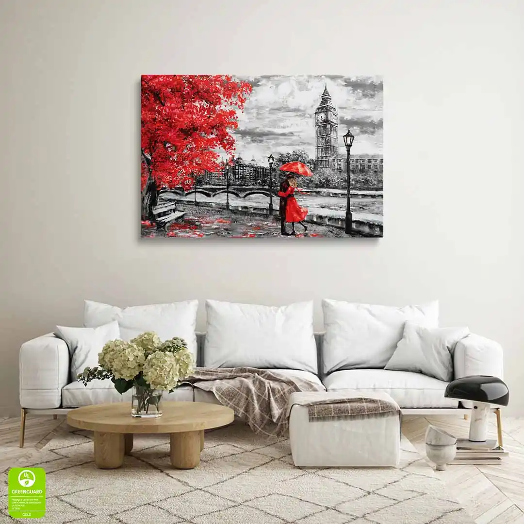 Para na obrazie emanuje bliskością i spokojem, co sprawia, że dekoracja doskonale pasuje do różnorodnych wnętrz. Obraz na płótnie z motywem pary w Londynie świetnie uzupełni zarówno nowoczesne, jak i klasyczne aranżacje. To propozycja dla tych, którzy cenią subtelne, a zarazem wyraziste akcenty dekoracyjne. Wprowadź do swojego domu lub biura odrobinę londyńskiego uroku i romantyzmu.