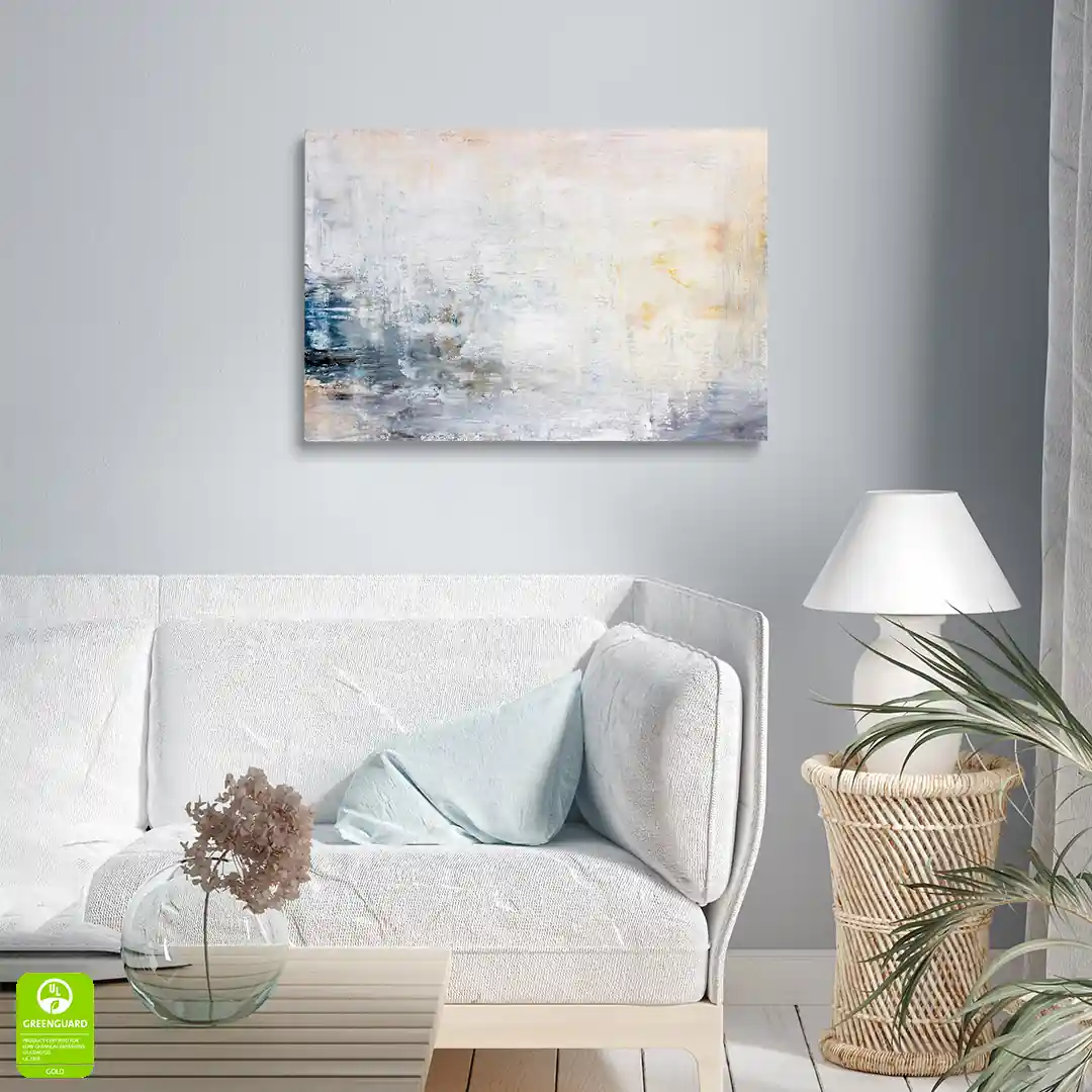 - techniką druku - proces drukowania wykorzystuje inne metody tworzenia kolorów (tzw. "przestrzeń barw") niż te, które stosowane są na ekranach komputera; kolory drukowane mogą wyglądać również nieco inaczej na różnych materiałach (np. canvasie, flizelinie, papierze czy szkle itp.) i przy użyciu różnych tuszy, w naszym przypadku tuszy do druku UV; złote elementy nie są wybiórczo metalizowane - efekt uzyskany jest poprzez wydruk tekstury w kolorze złota;