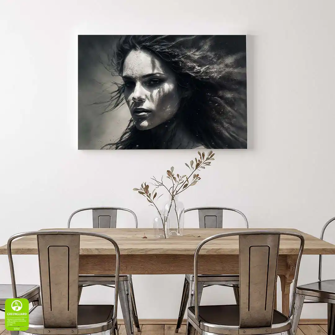 Montaż obrazu to szybki i bezproblemowy proces, ponieważ w zestawie znajdują się wszystkie niezbędne akcesoria mocujące. Narożniki obrazu są odpowiednio zabezpieczone na czas transportu, aby chronić krawędzie przed uszkodzeniem.