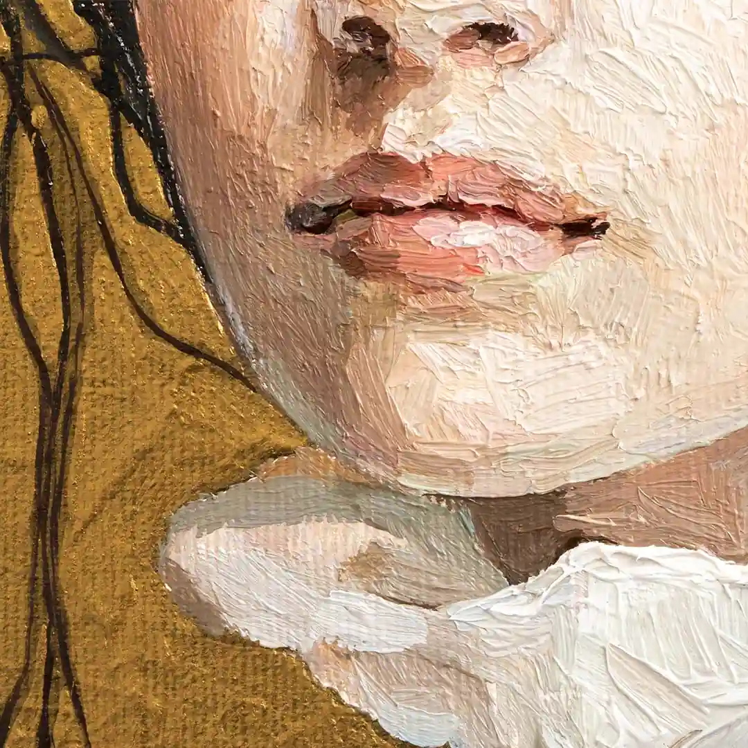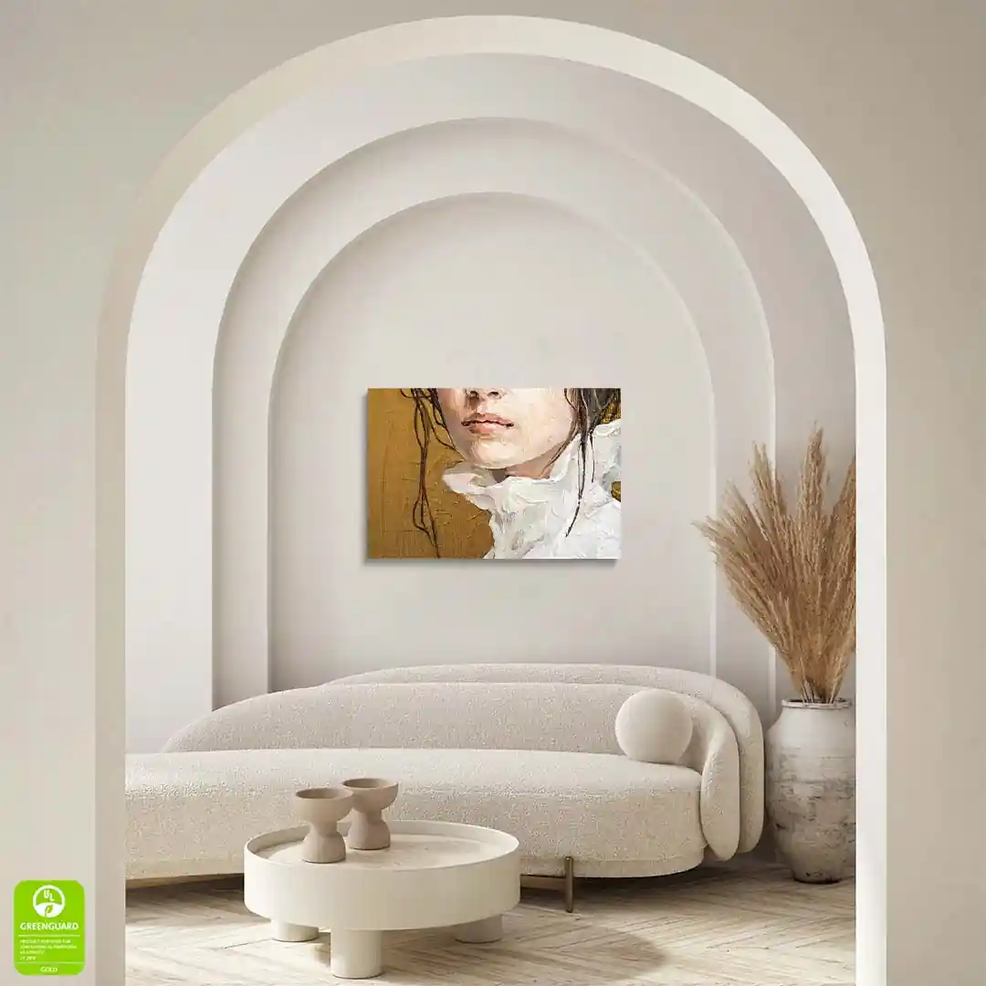 - techniką druku - proces drukowania wykorzystuje inne metody tworzenia kolorów (tzw. "przestrzeń barw") niż te, które stosowane są na ekranach komputera; kolory drukowane mogą wyglądać również nieco inaczej na różnych materiałach (np. canvasie, flizelinie, papierze czy szkle itp.) i przy użyciu różnych tuszy, w naszym przypadku tuszy do druku UV; złote elementy nie są wybiórczo metalizowane - efekt uzyskany jest poprzez wydruk tekstury w kolorze złota;