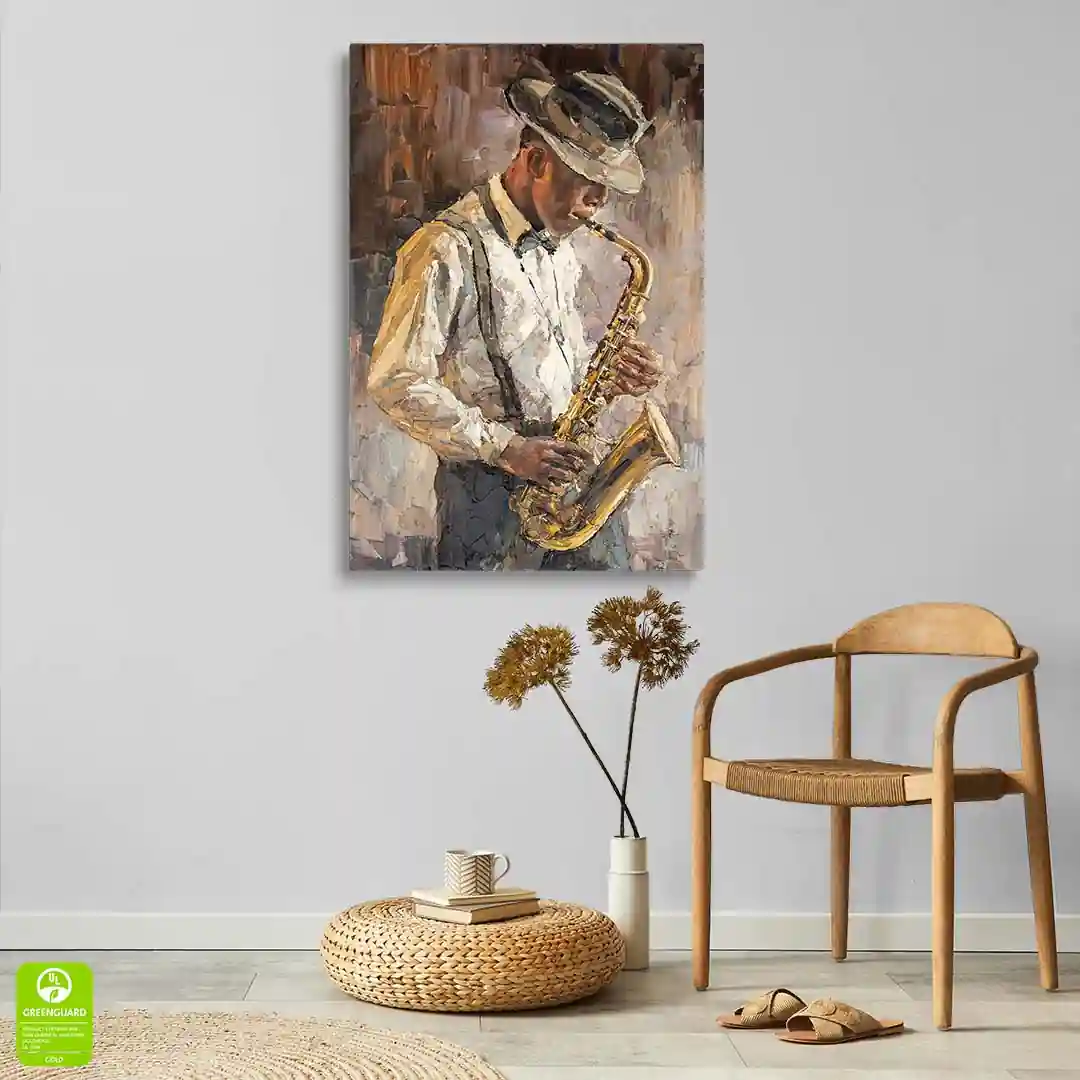 - techniką druku - proces drukowania wykorzystuje inne metody tworzenia kolorów (tzw. "przestrzeń barw") niż te, które stosowane są na ekranach komputera; kolory drukowane mogą wyglądać również nieco inaczej na różnych materiałach (np. canvasie, flizelinie, papierze czy szkle itp.) i przy użyciu różnych tuszy, w naszym przypadku tuszy do druku UV; złote elementy nie są wybiórczo metalizowane - efekt uzyskany jest poprzez wydruk tekstury w kolorze złota;