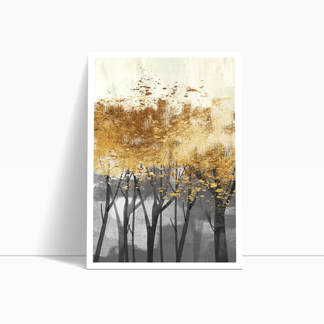 Zestaw 2 plakatów - Abstrakcja złoty las – Nowoczesna dekoracja do salonu, styl glamour i industrialny, elegancka sypialnia