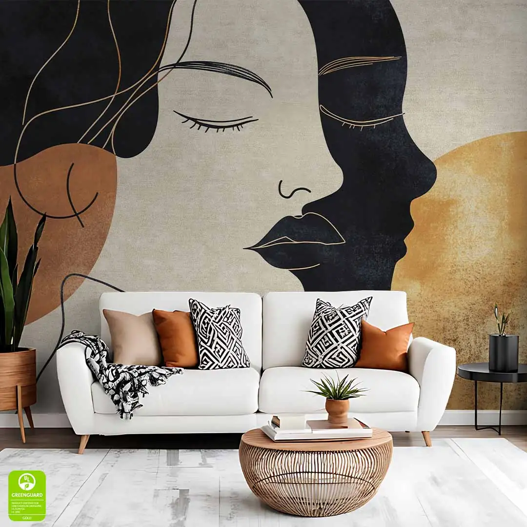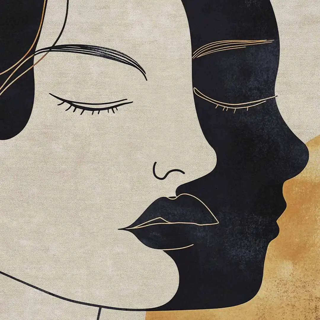 Fototapeta - Dwa spojrzenia to propozycja dla miłośników abstrakcyjnych i raczej minimalistycznych wzorów. Motyw prezentuje twarz kobiecą w dwóch barwach jasnej oraz ciemnej. Jak dwa nasze oblicza. Barwy są ograniczone zaledwie do kilku: beże, brązy i czerń, ale sprawia to, iż wzór będzie pasował niemal do każdej kolorystyki wnętrza. Wzór ma nowoczesny charakter więc sprawdzi się świetnie we wnętrzach nowoczesnych, minimalistycznych czy loftowych. Oczywiście nie wyklucza to zastosowania fototapety również w klasycznych wnętrzach.