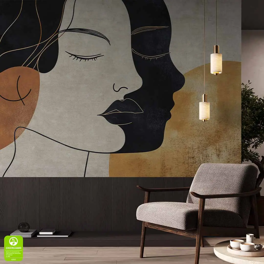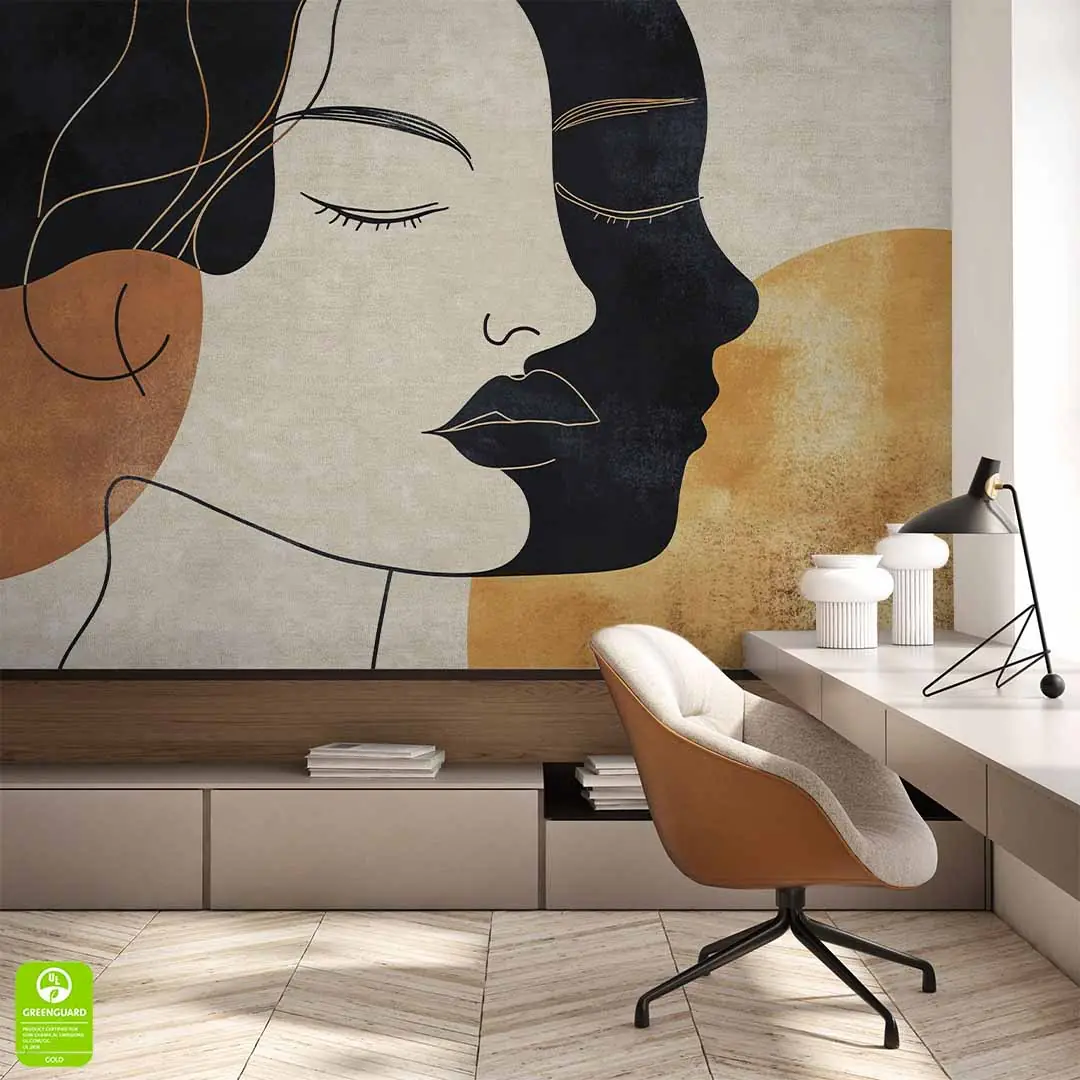 Dwa spojrzenia – fototapeta w stylu line-art z kobiecymi twarzami na wymiar