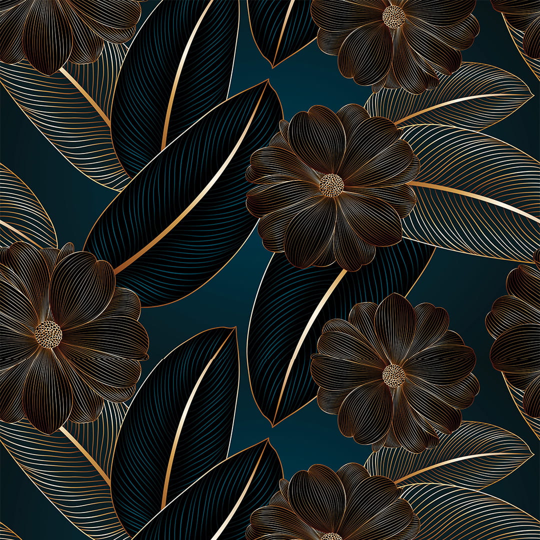 Designerska tapeta na ścianę "Złote kwiaty dalii na ciemnym tle"