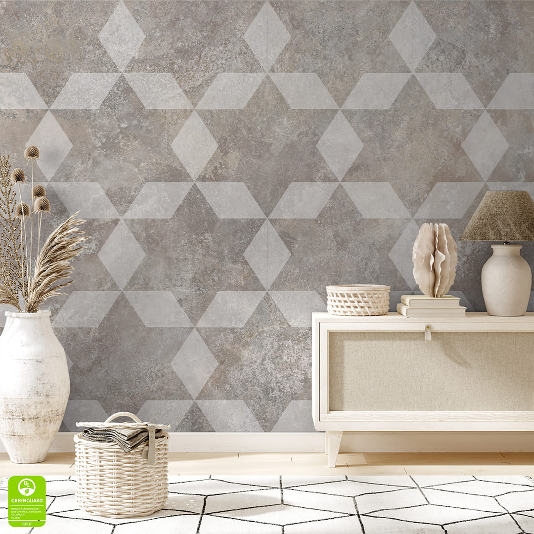 Fototapeta - Betonowa Szara Mozaika – Nowoczesny Wzór 3D na Wymiar do Salonu i Sypialni, Styl Skandynawski, Tekstura Betonu, Geometryczne Gwiazdy