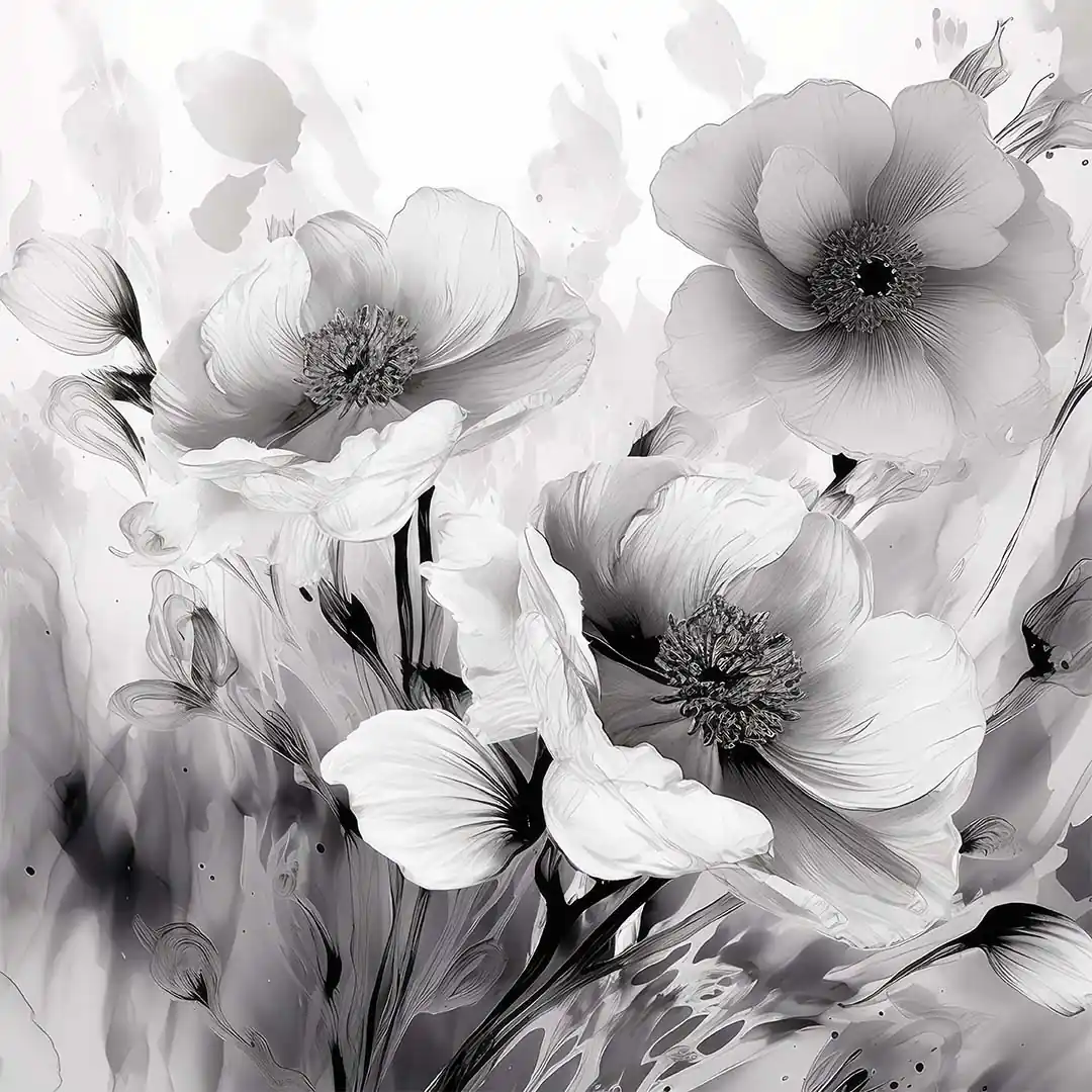 Fototapeta Dekoracyjne kwiaty w kolorach bieli i czerni