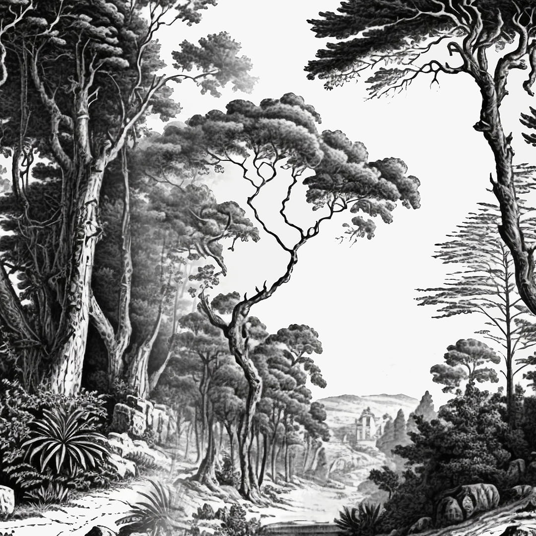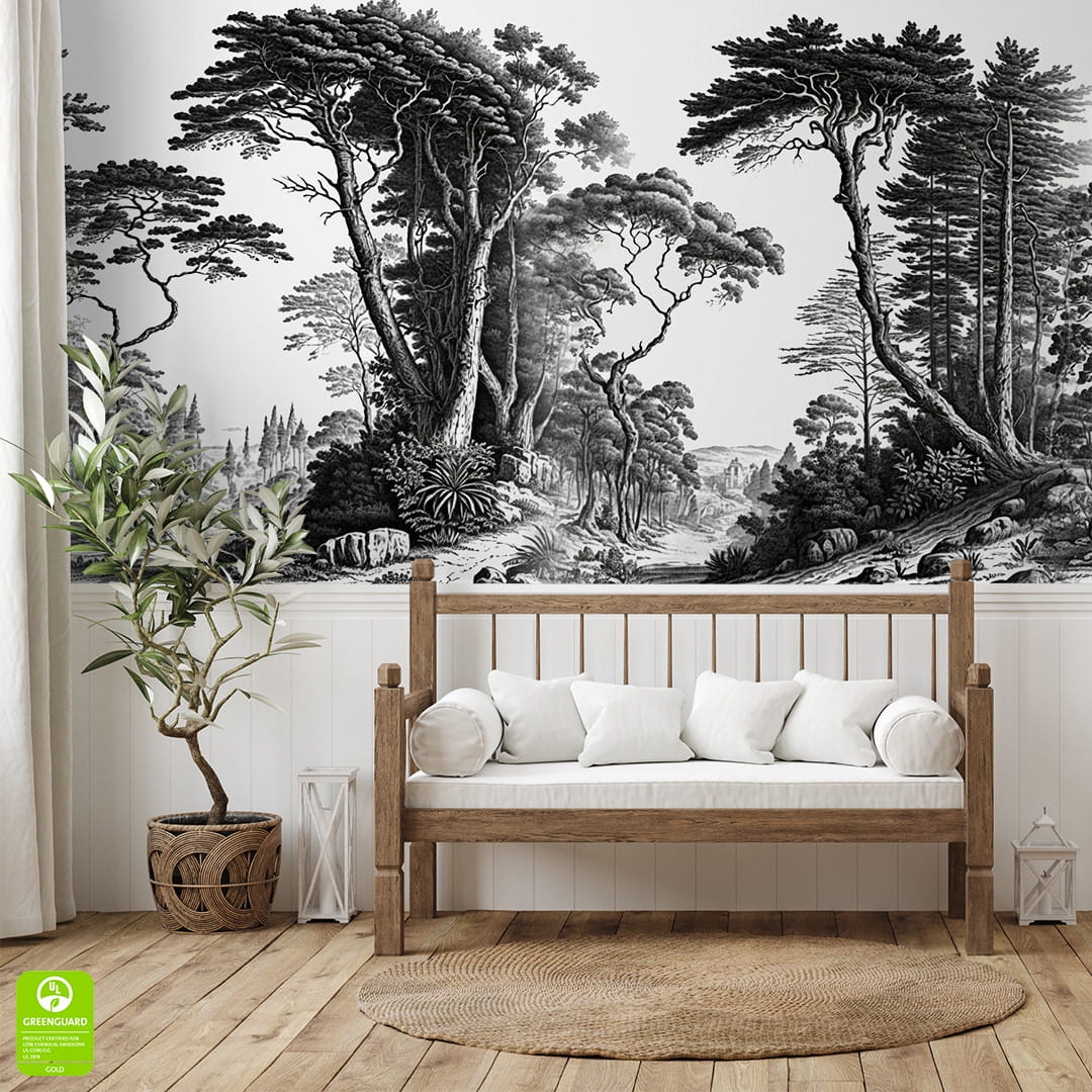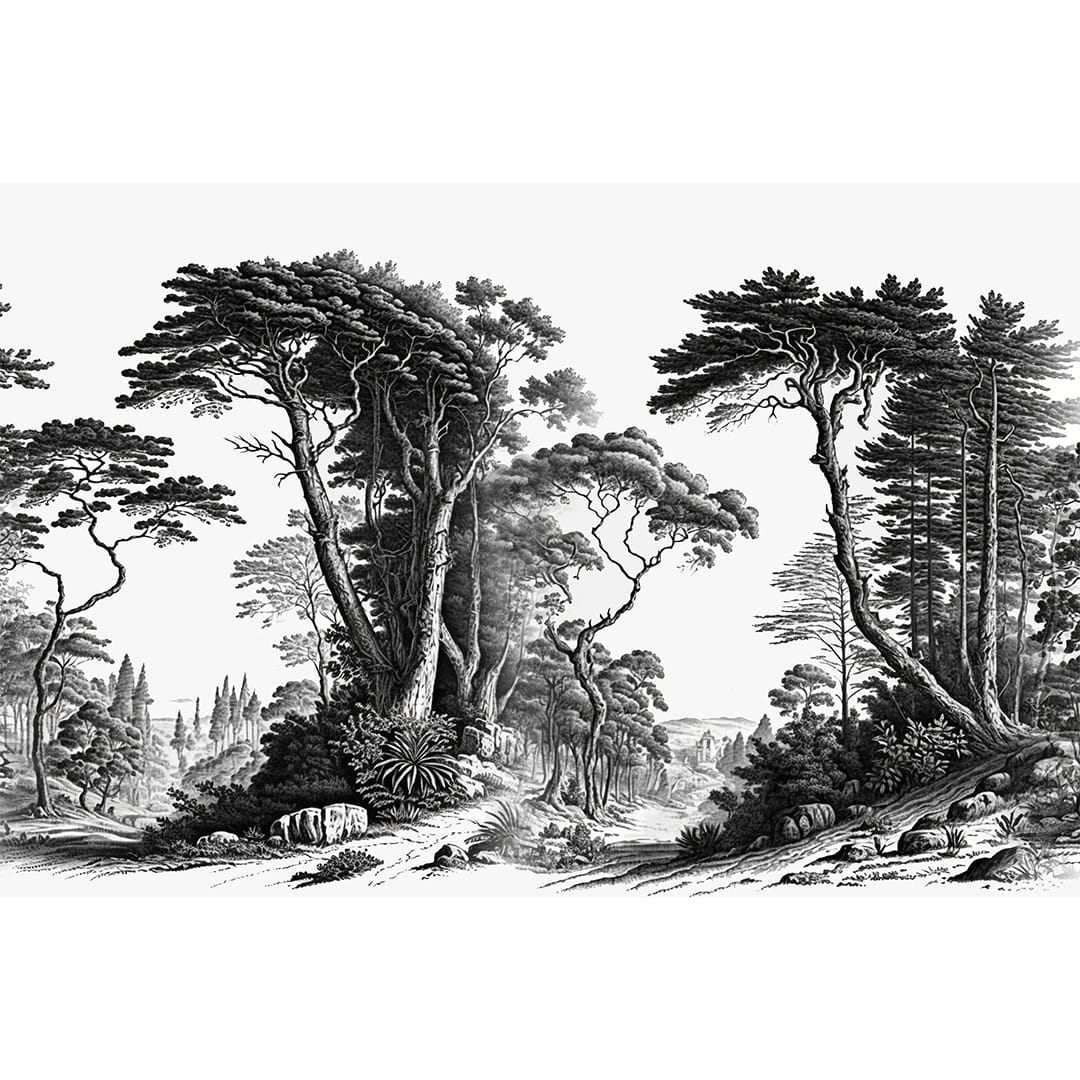 Fototapeta - Klasyczny czarno-biały krajobraz leśny - do salonu sypialni na wymiar, styl klasyczny i skandynawski