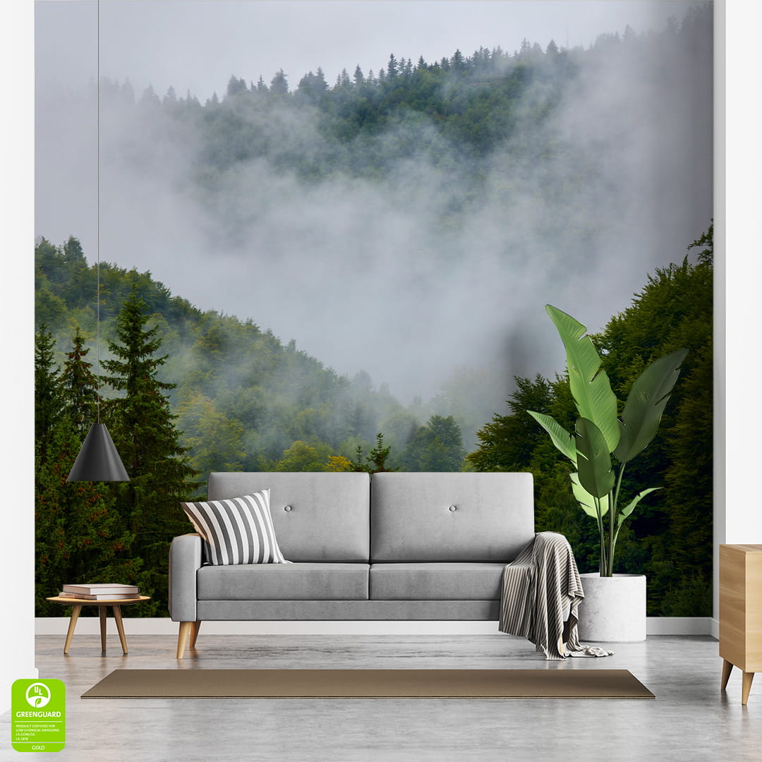 Designerska fototapeta na ścianę "Mgła unosząca się nad wiecznie bujnym zielonym lasem"