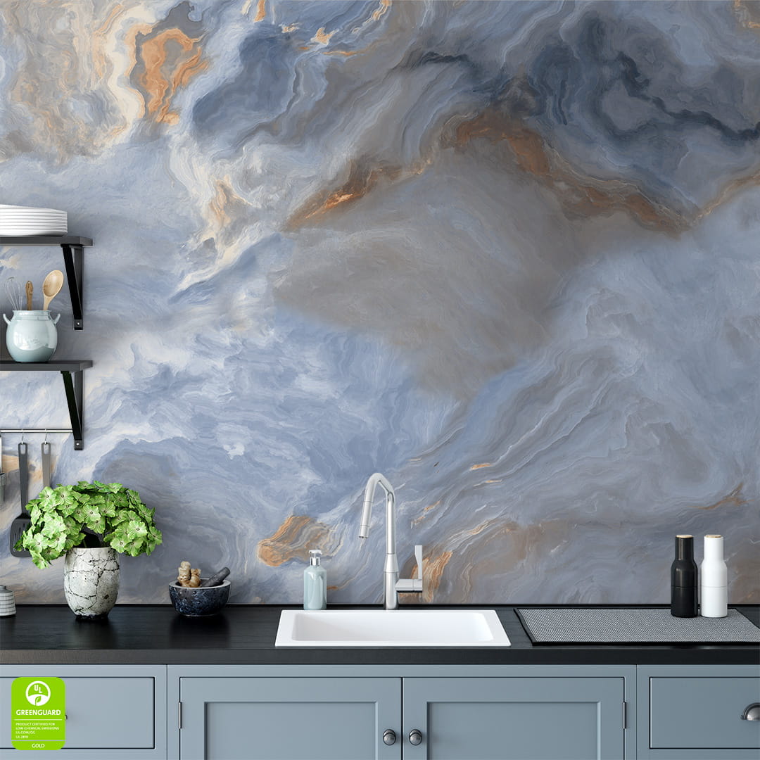 Fototapeta - Niebieski Marmur Akwarela – Kamień na Wymiar do Salonu i Sypialni, Styl Glamour i Nowoczesny