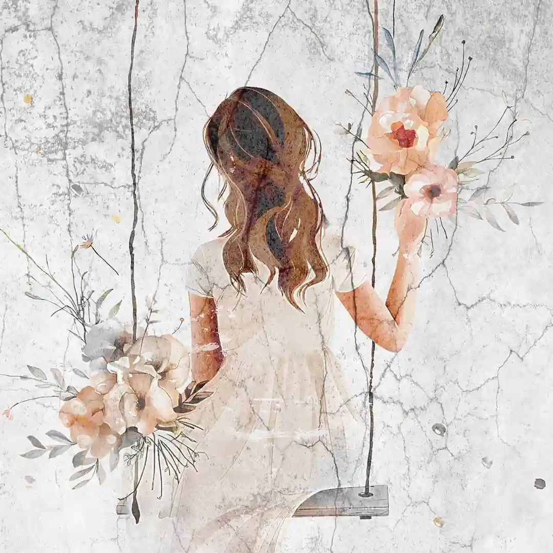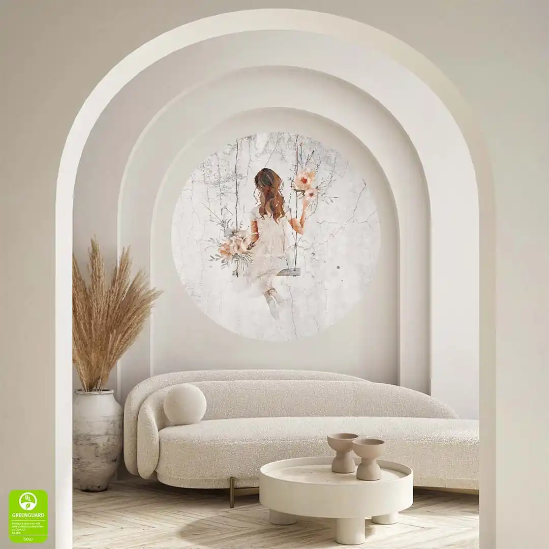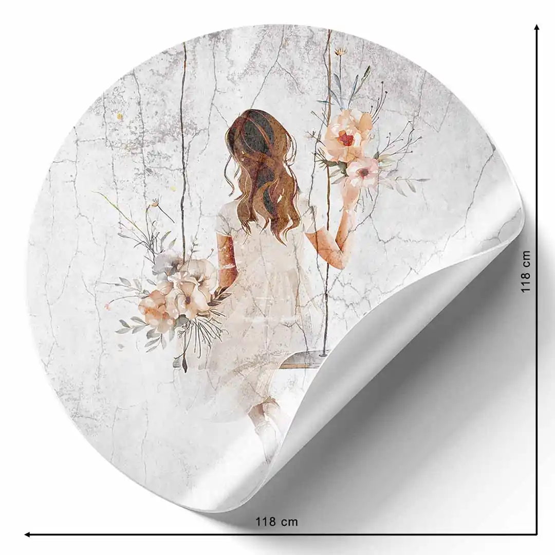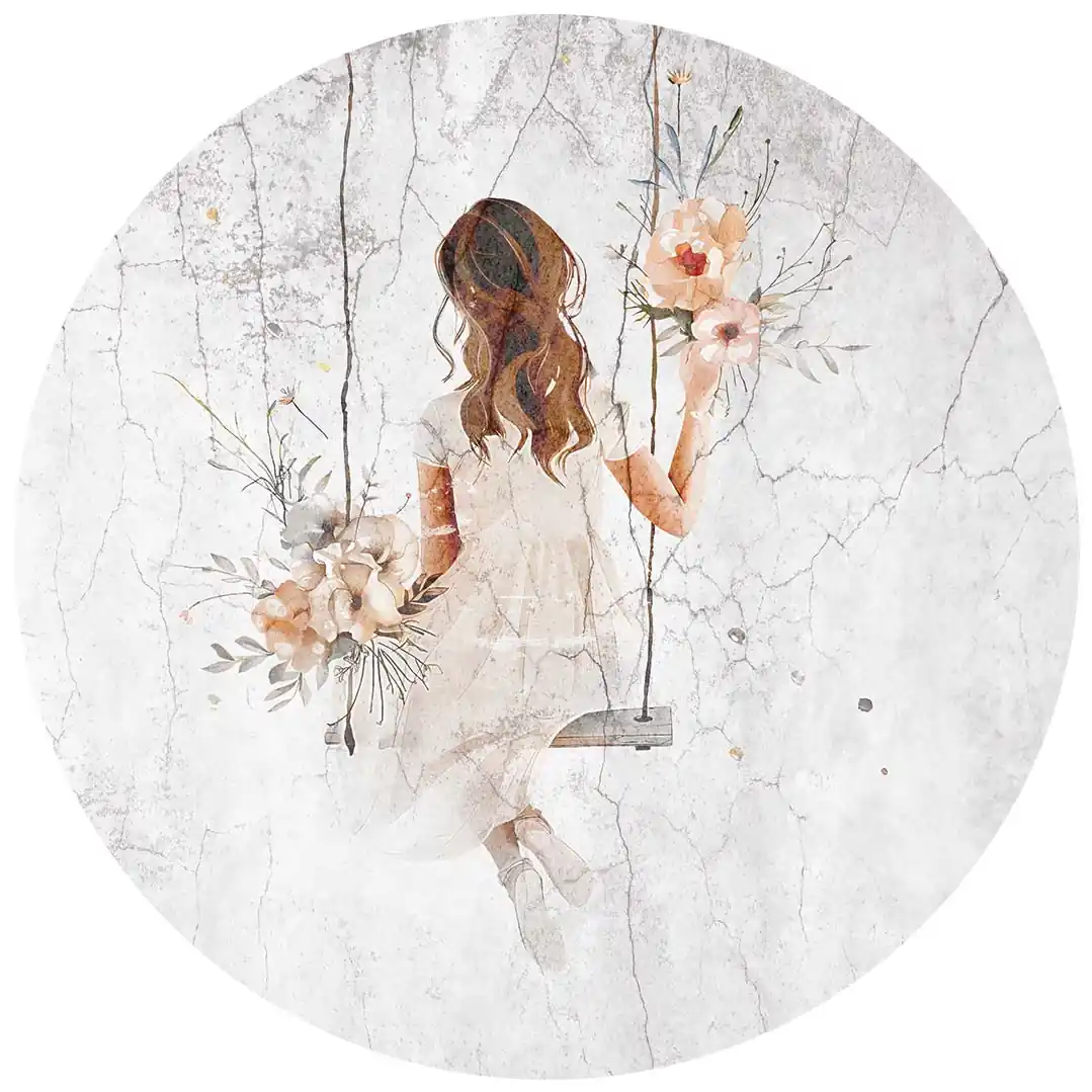 Fototapeta koło - Dziewczyna z kwiatami na huśtawce