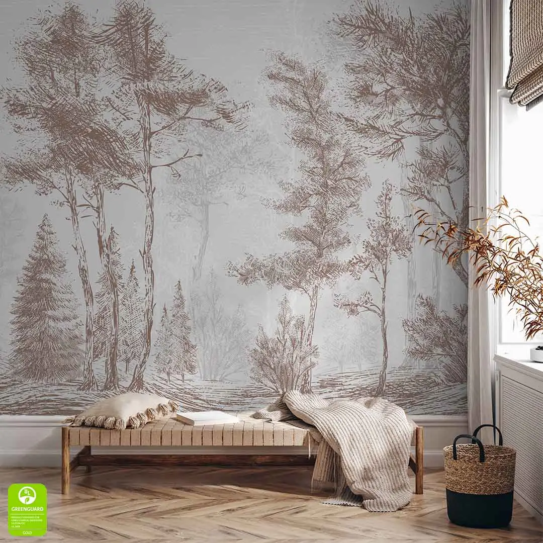 Fototapeta na ścianę Las Drzewa Szkic – Nowoczesna Fototapeta na Wymiar Vintage