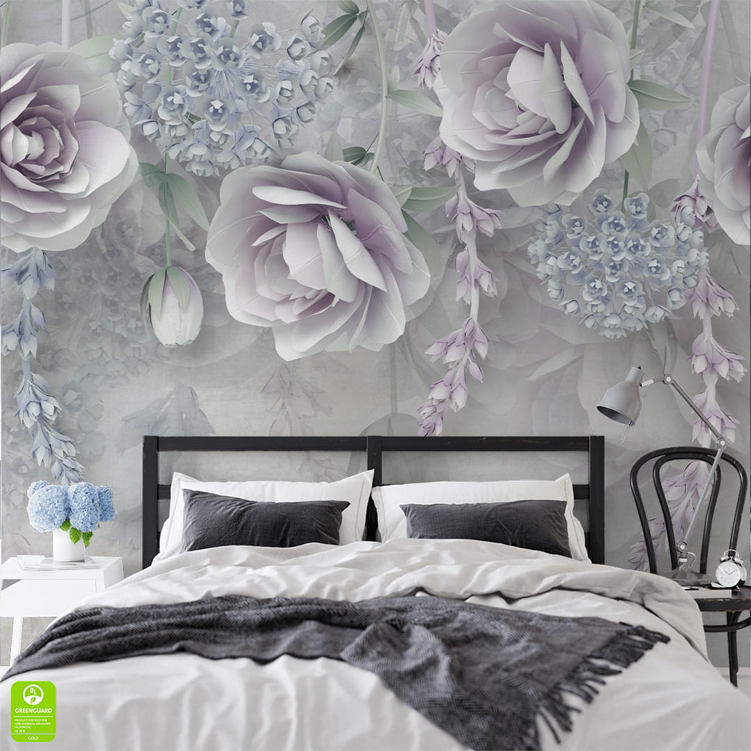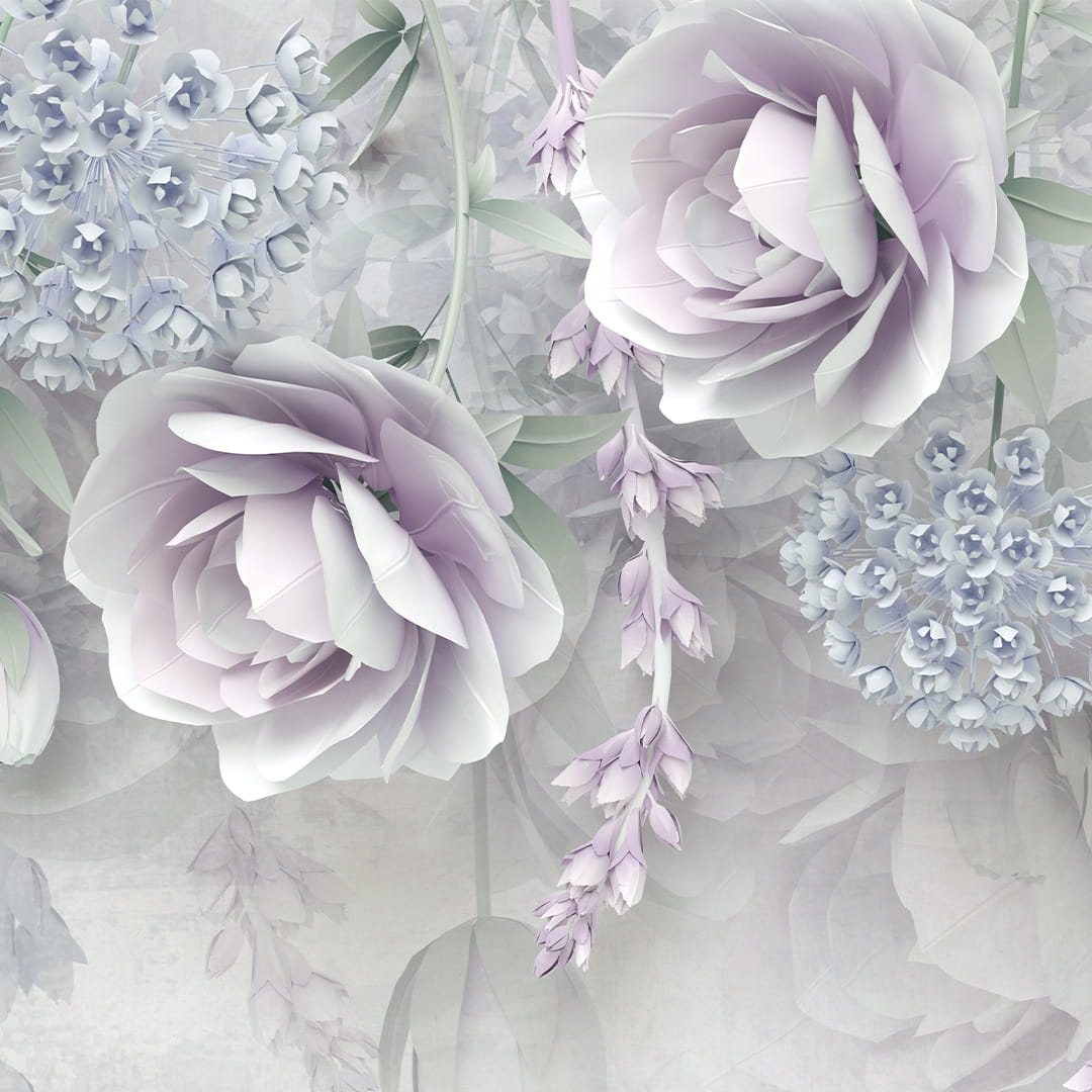 Fototapeta na wymiar 3D - Przestrzenne Kwiaty – Pudrowy Róż i Fiolet, Styl Nowoczesny, Glamour do Sypialni, Salonu